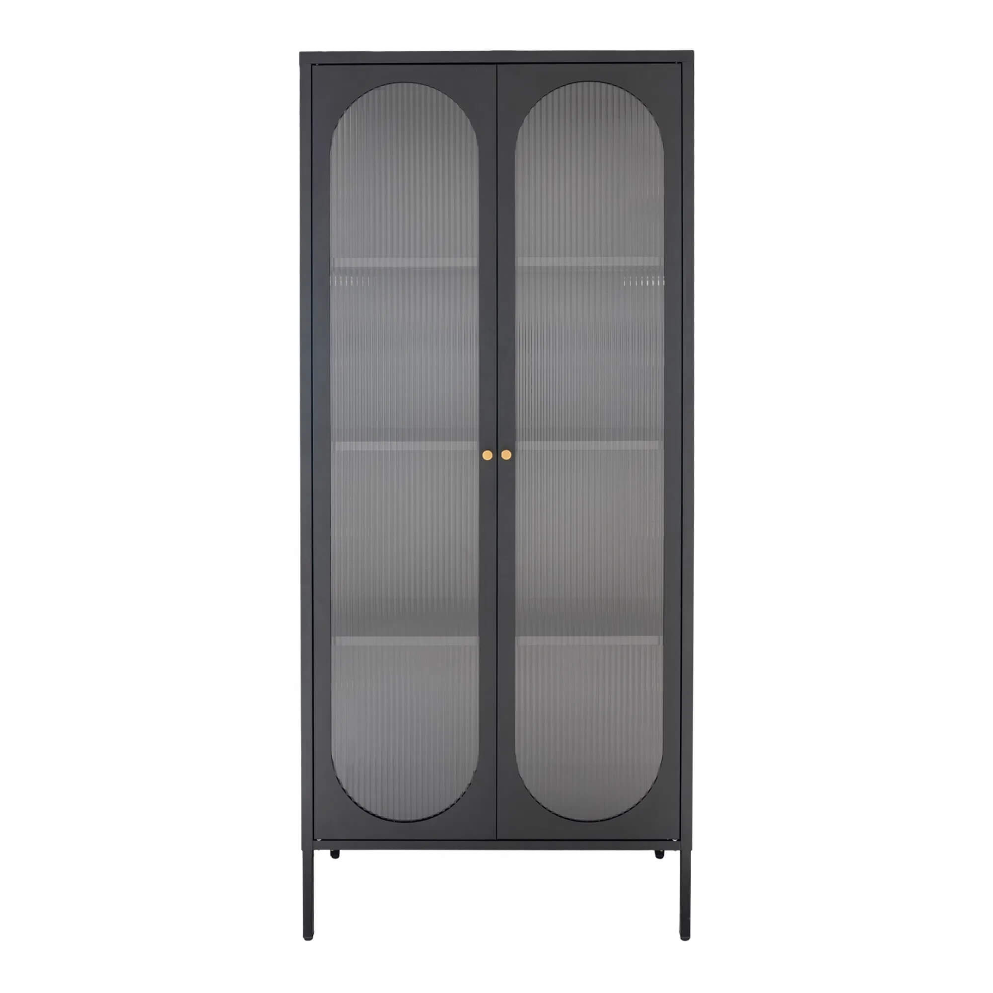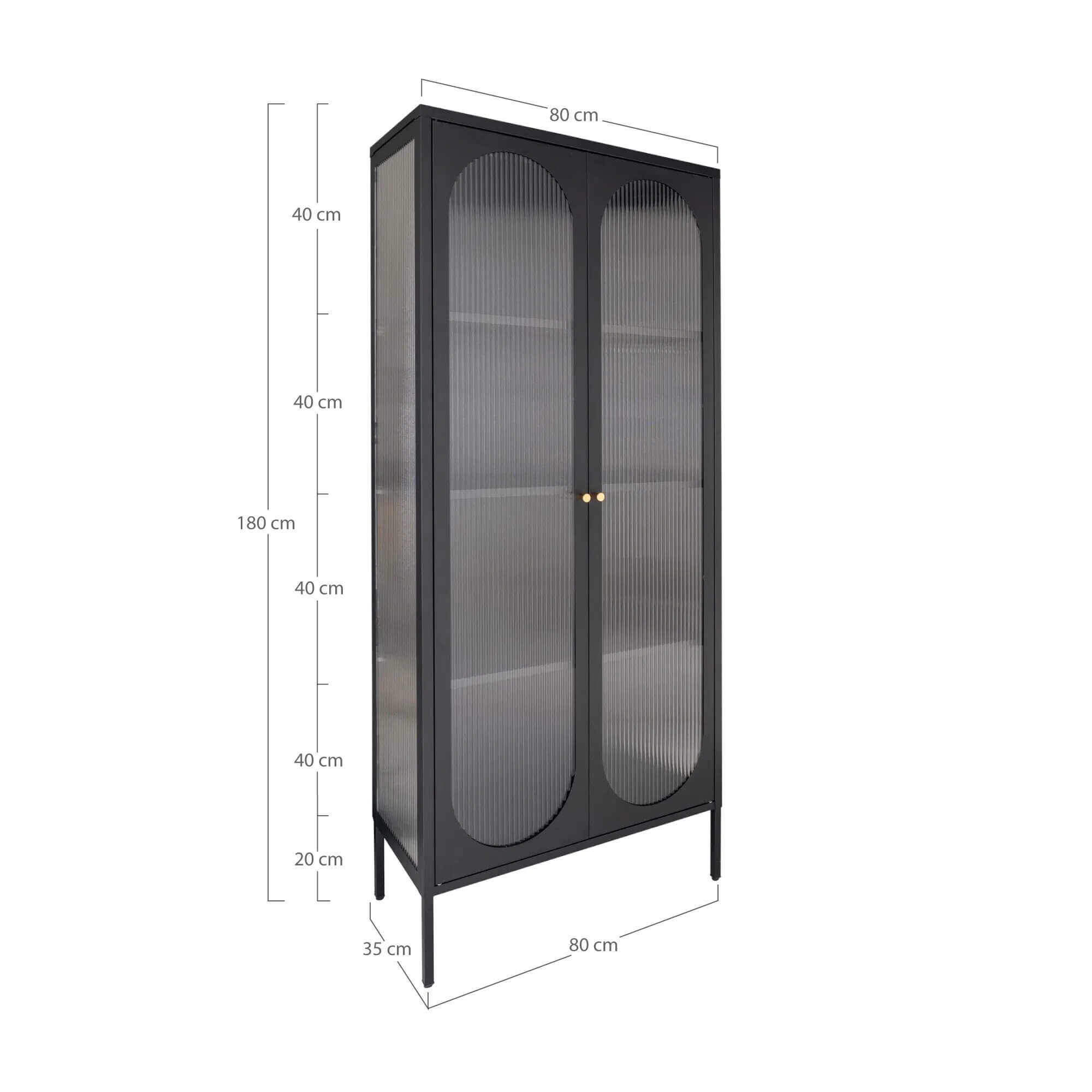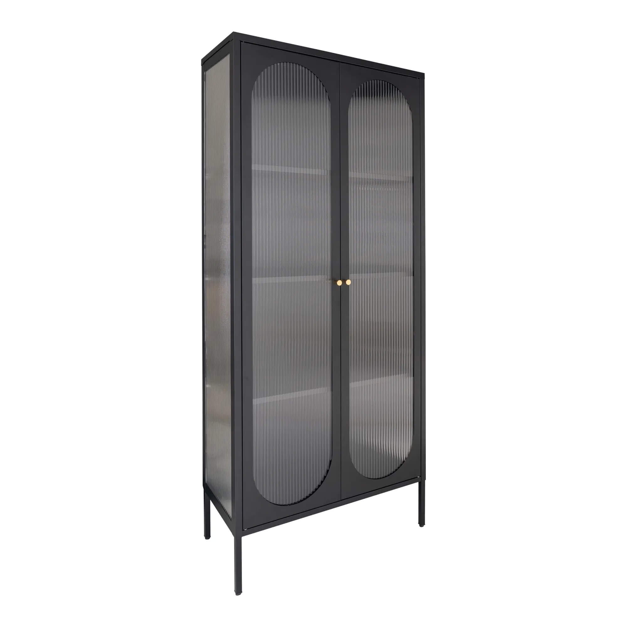 Adelaide Vitrineskab - Vitrineskab, sort, 2 riflede glasdøre 80x35x180 cm