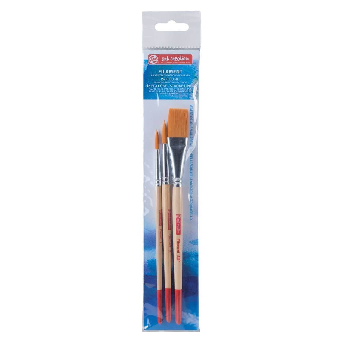 Dette sæt med 3 polyesterbørster kan absorbere meget vand, hvilket gør det velegnet til meget fortyndede malinger såsom akvareller og blæk. Sættet indeholder følgende typer og størrelser: 2 runde børster i størrelse 6 og 8, flad liner børste i størrelse 5/8”.