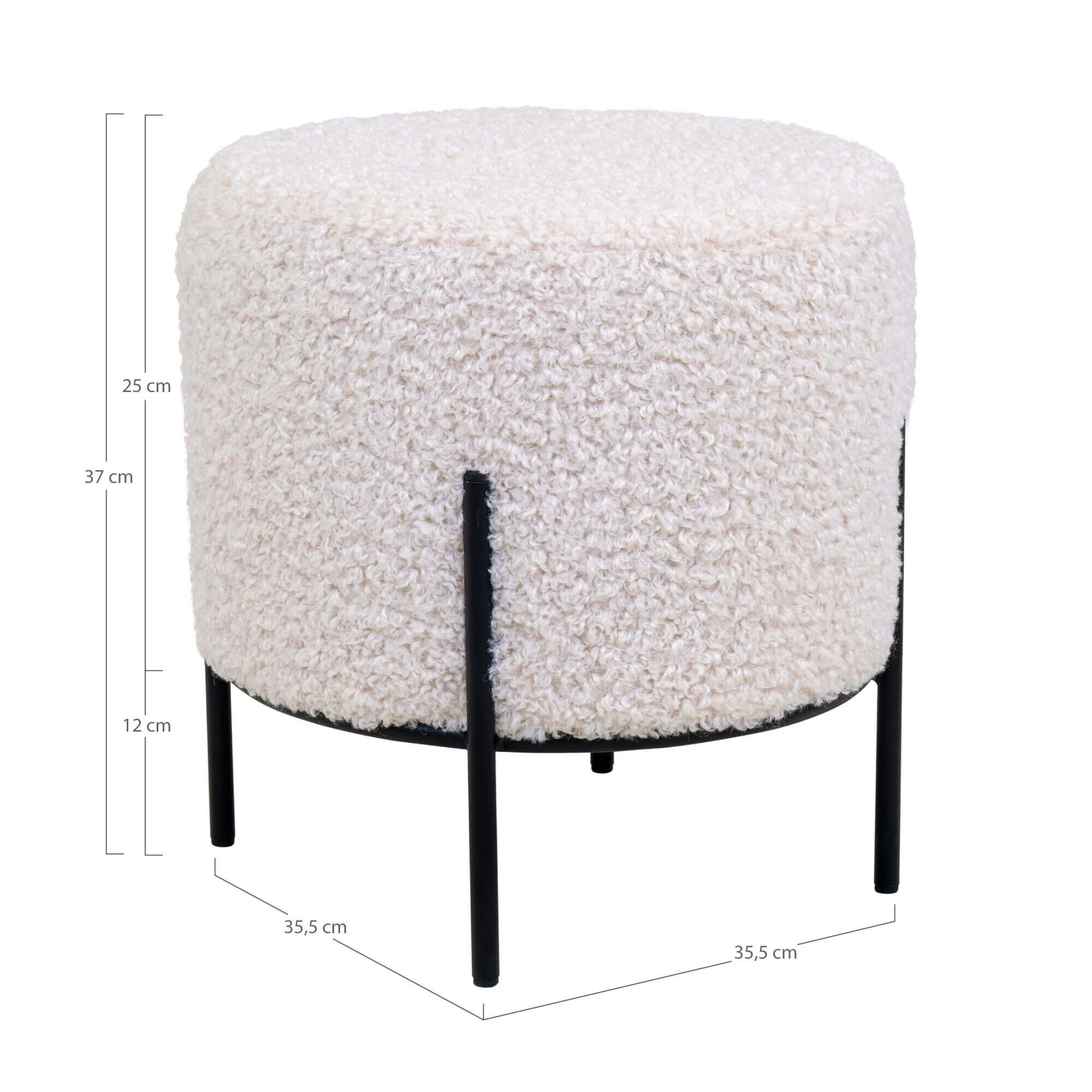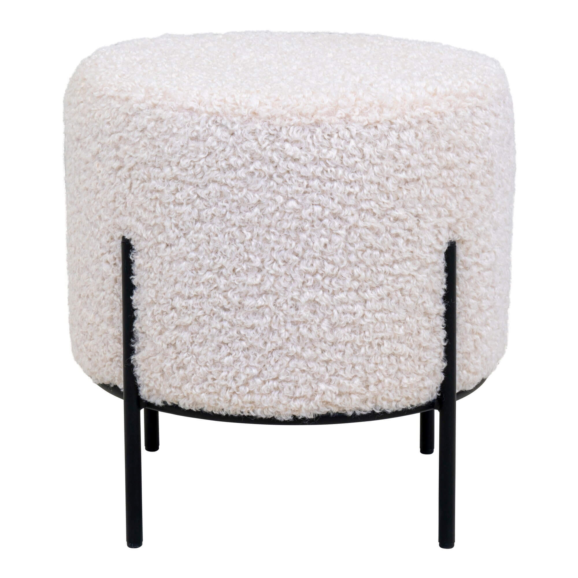 Alford Puf - Puf i kunstig lammeskind, hvid med sorte ben, Ø35,5x37 cm, HN1090