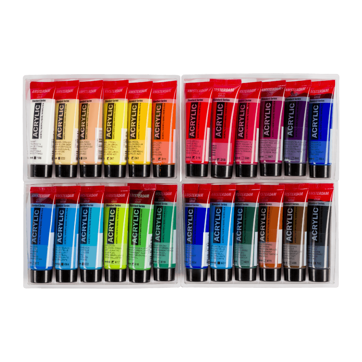 Amsterdam General Selection Sæt 24x20 ml er et fantastisk produkt til kunstnere i alle niveauer. Dette sæt indeholder 24 farver af høj kvalitet og er perfekt til alle typer akrylmalerier. Med dette sæt kan du udforske og udtrykke din kreativitet på nye måder.