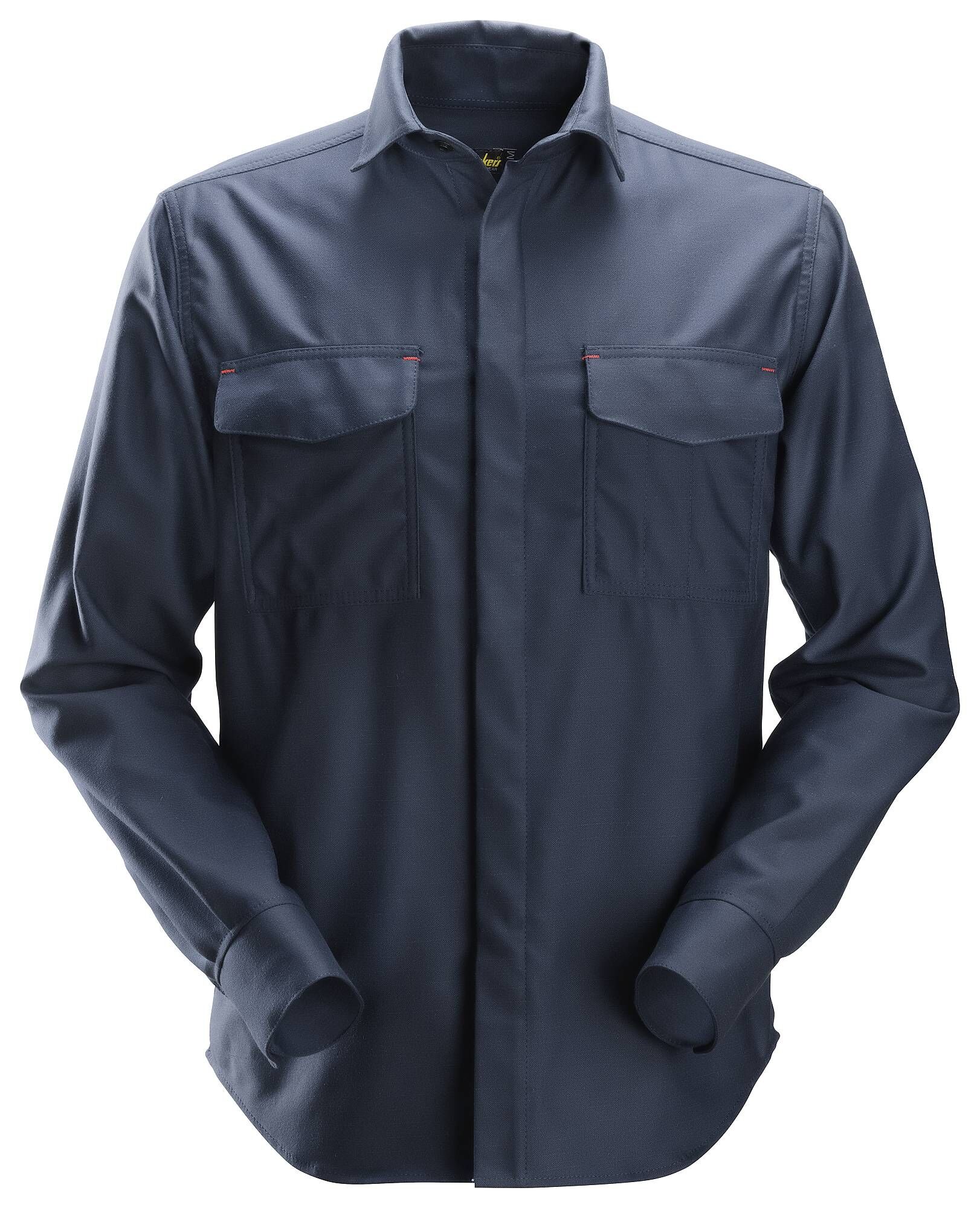 Langærmet sikkerhedsskjorte, der yder beskyttelse mod varme, flammer og lysbuer. Trykknapdesignet muliggør hurtigt afklædning i en nødsituation.
