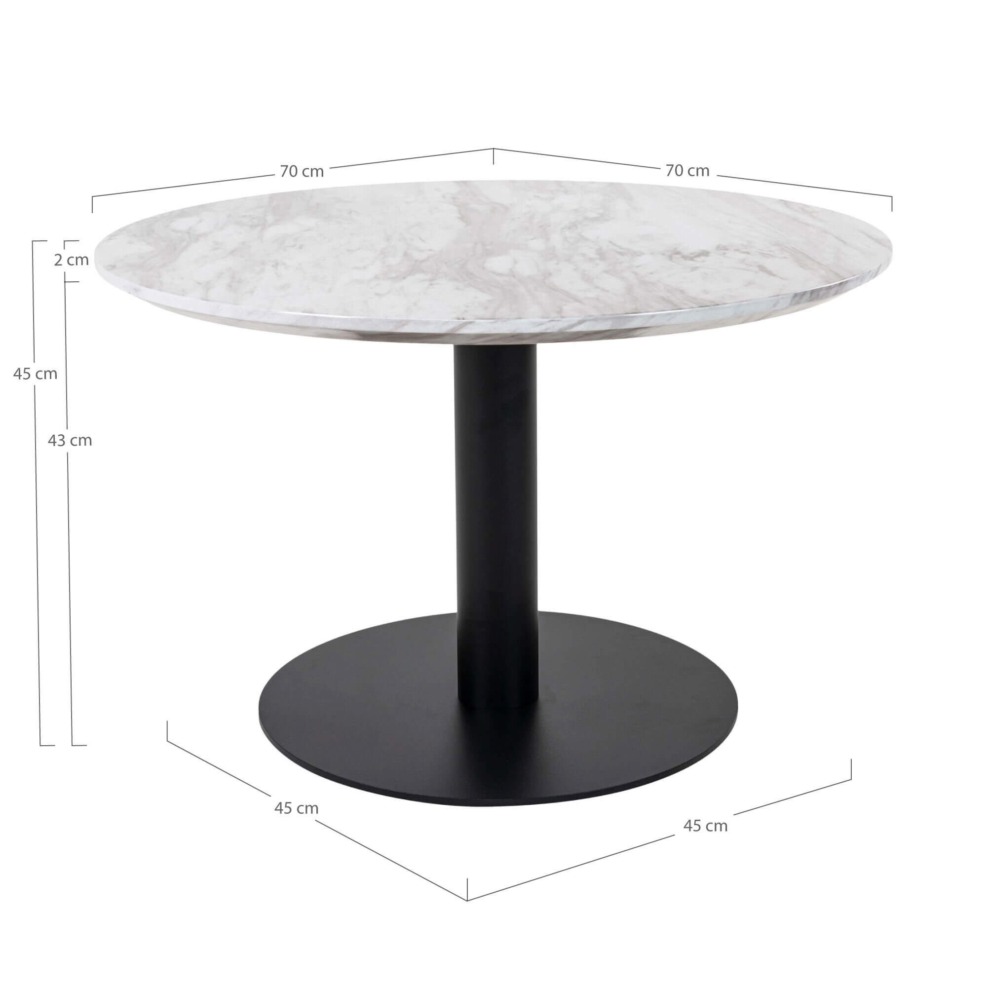 Bolzano Sofabord - Sofabord, marmor look bordplade, hvid, sort base ø70x45 cm