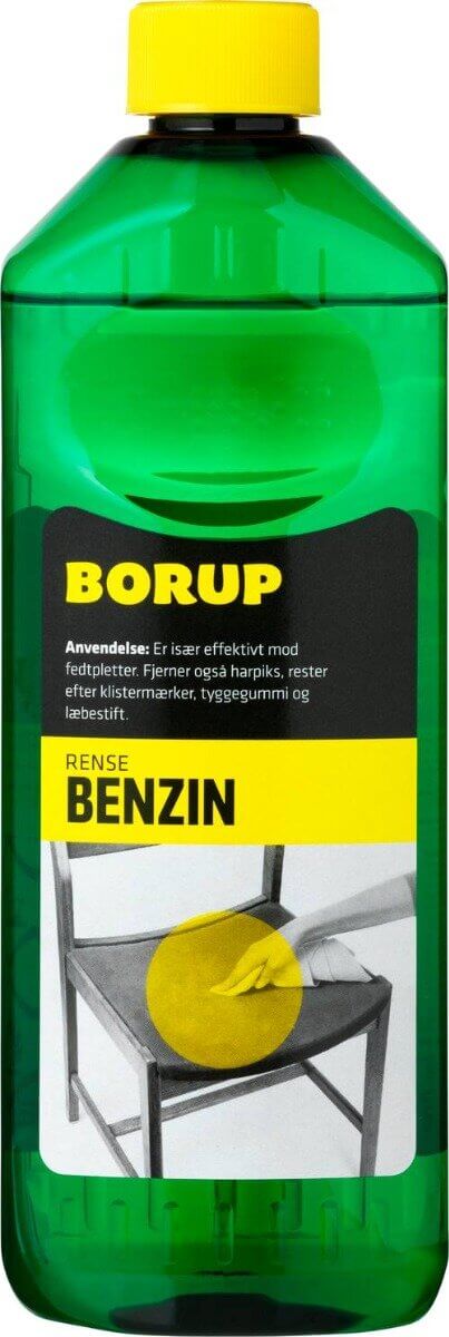 Borup Rense Benzin kan blandt andet bruges til pletfjerning, så du nemt og hurtigt kan fjerne genstridige pletter fra tekstiler og overflader.