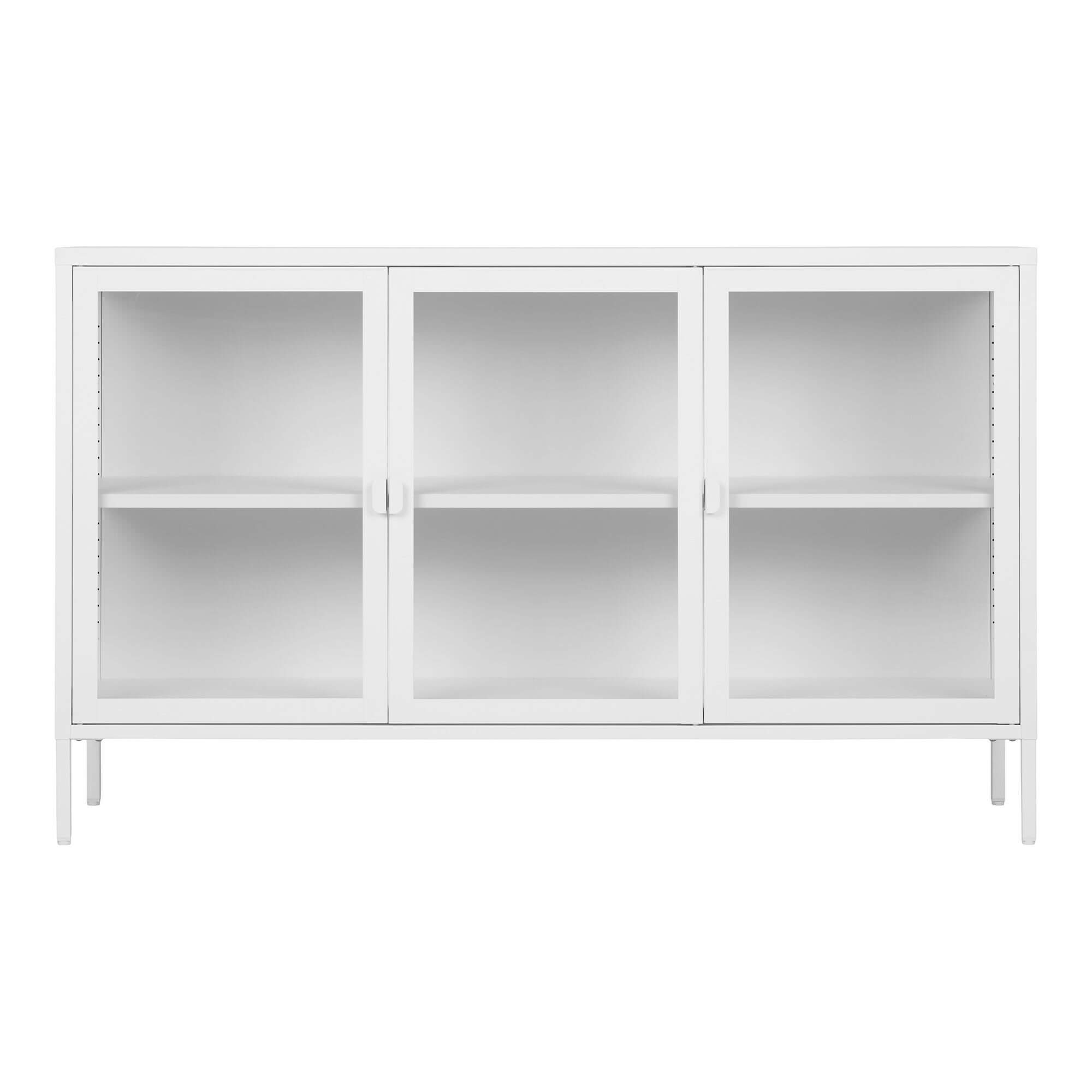 Brisbane Skænk - Skænk, 3 glaslåger, stål, hvid 140x40x85 cm-Stål