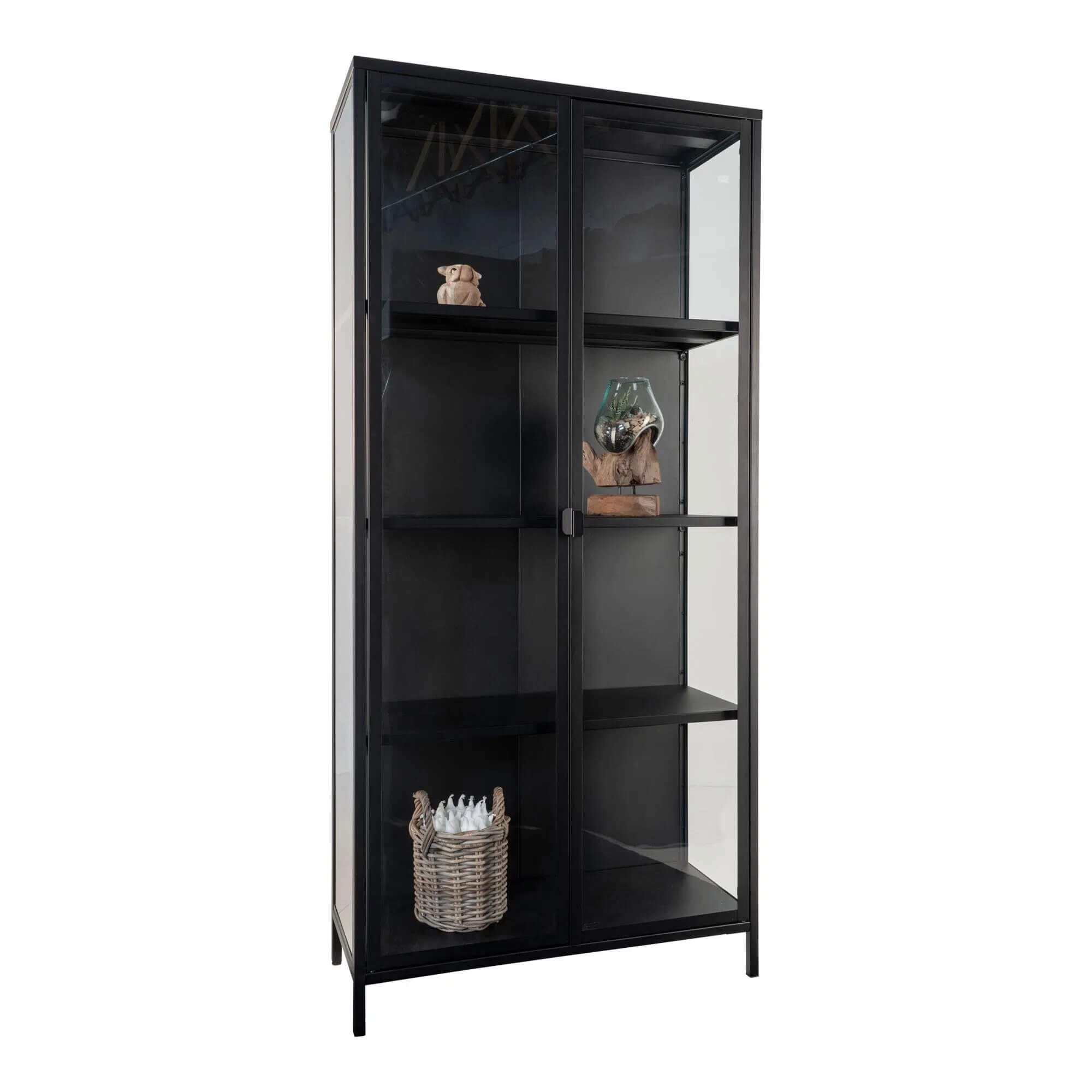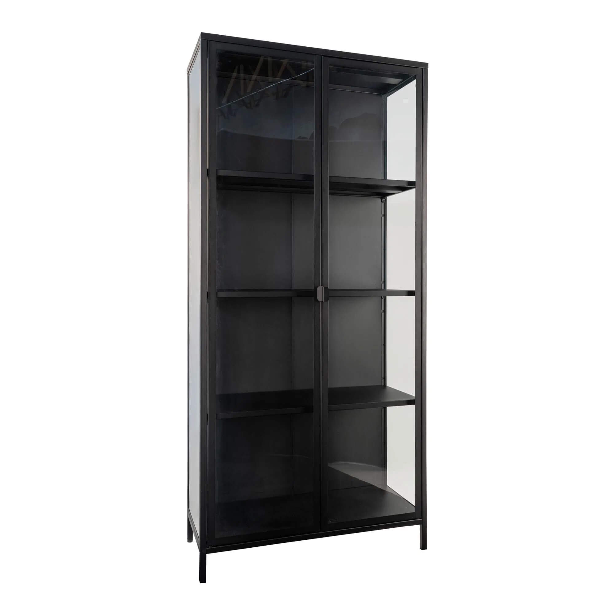 Brisbane Vitrineskab - Vitrineskab, 2 glaslåger, stål, sort 80x35x175 cm