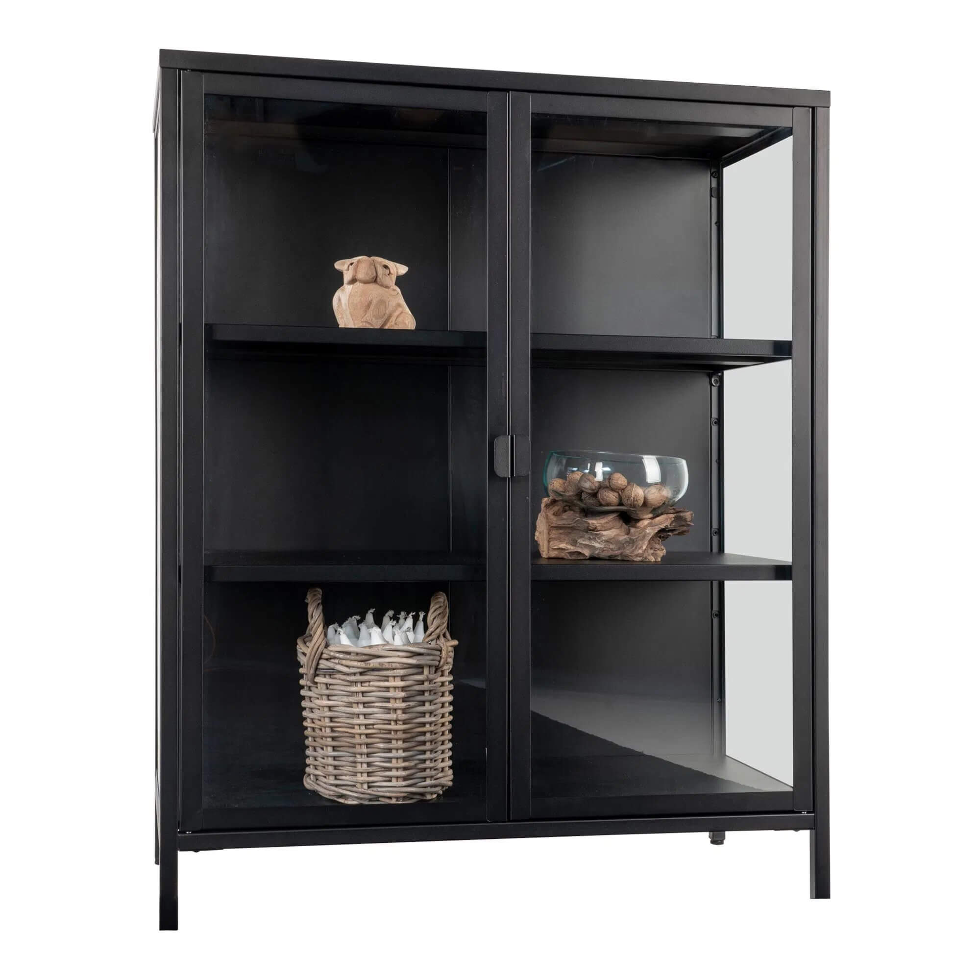 Brisbane Vitrineskab - Vitrineskab, 2 glaslåger, stål, sort 80x40x101 cm