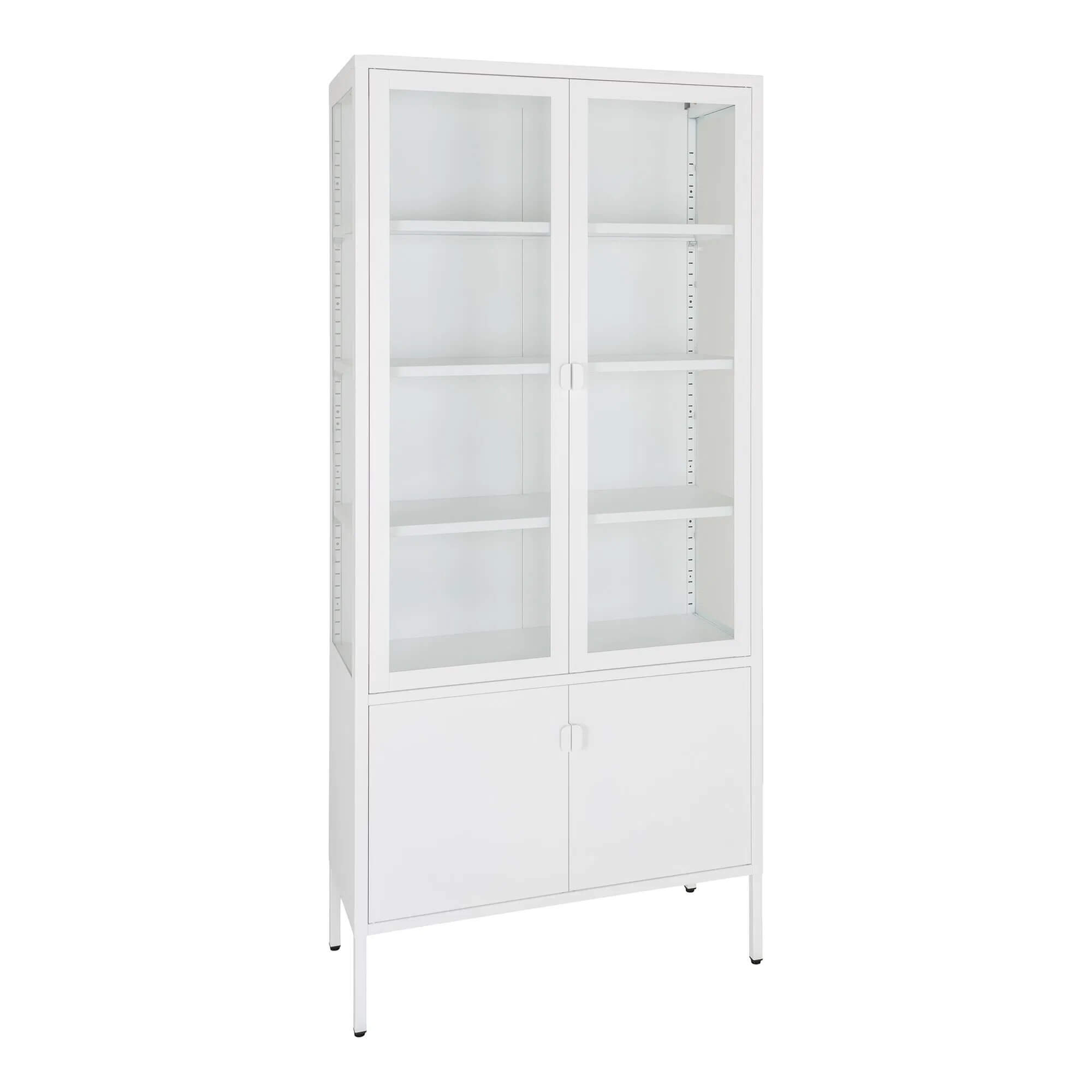 Brisbane Vitrineskab - Vitrineskab, 4 låger, stål, hvid 80x35x180 cm