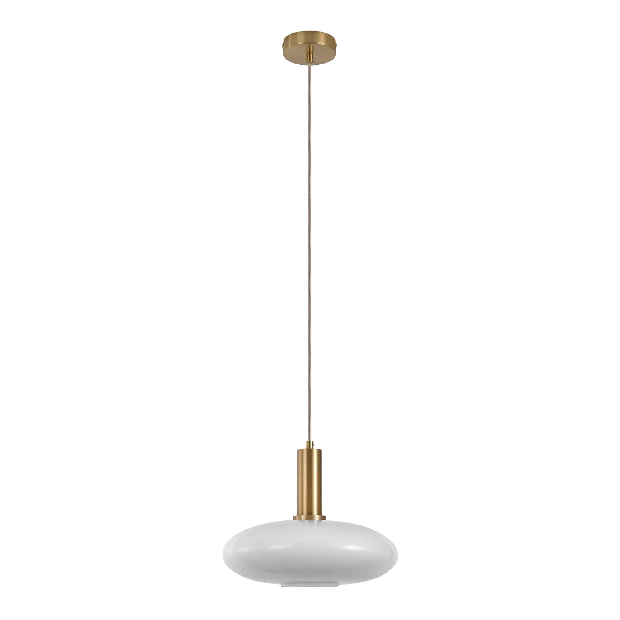 Chelsea Pendel - Pendel, hvid glas, messingfarvet fatning, elipseformet, Ø28 cm, 150 cm stofledning