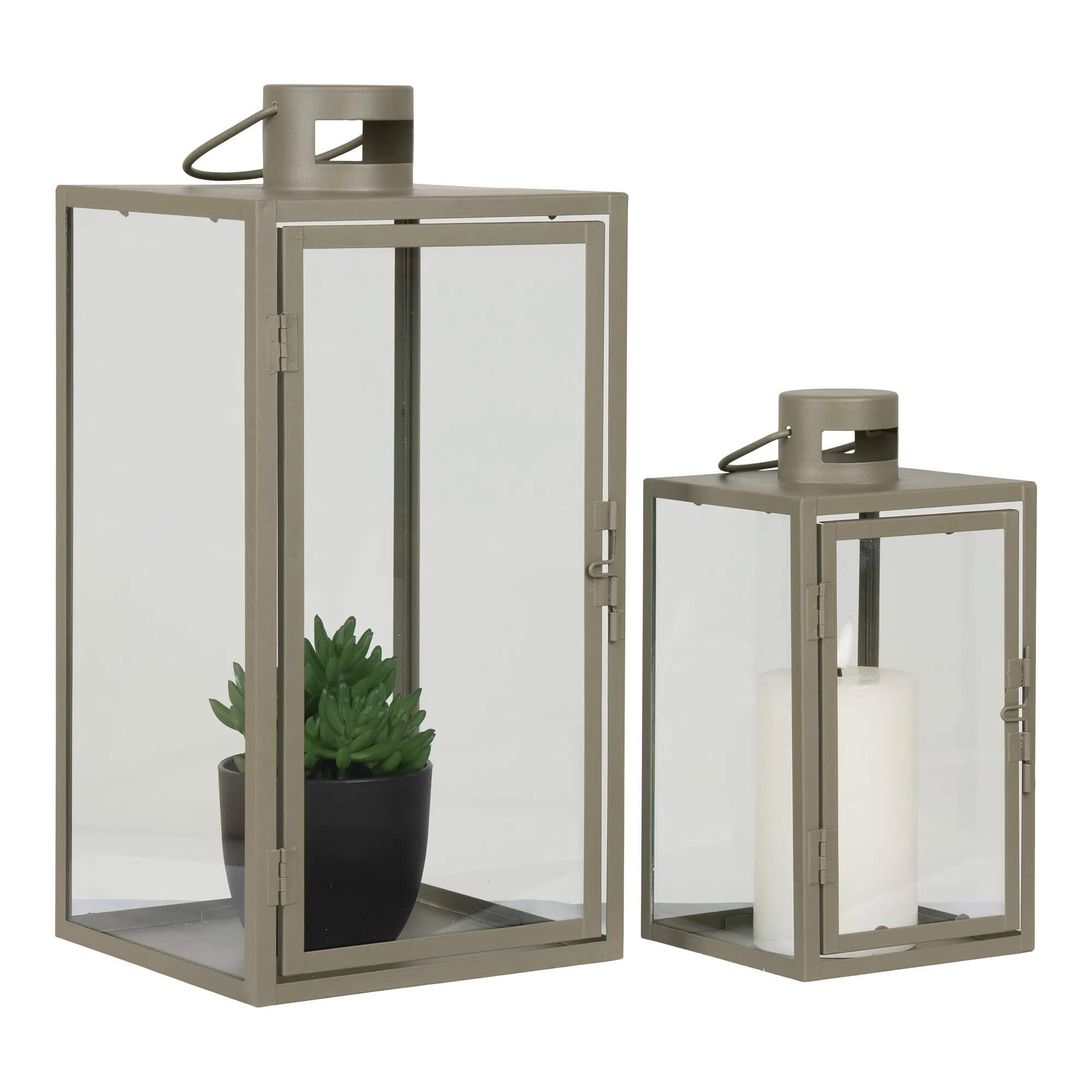 Corfu Lanterner - Lanterner, metal/glas, grøn, sæt af 2