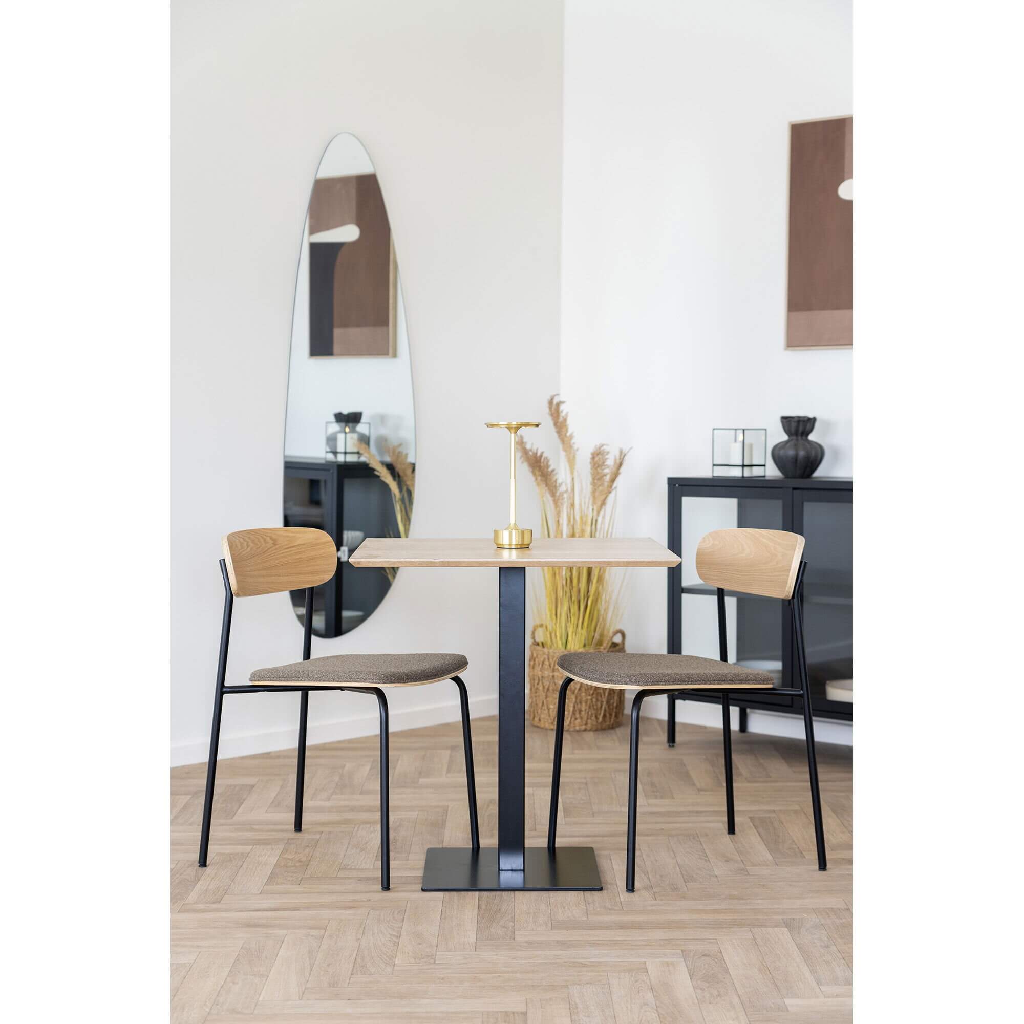 Fano Cafebord - Cafebord, melamin, natur, sort metal base 70x70x75 cm
