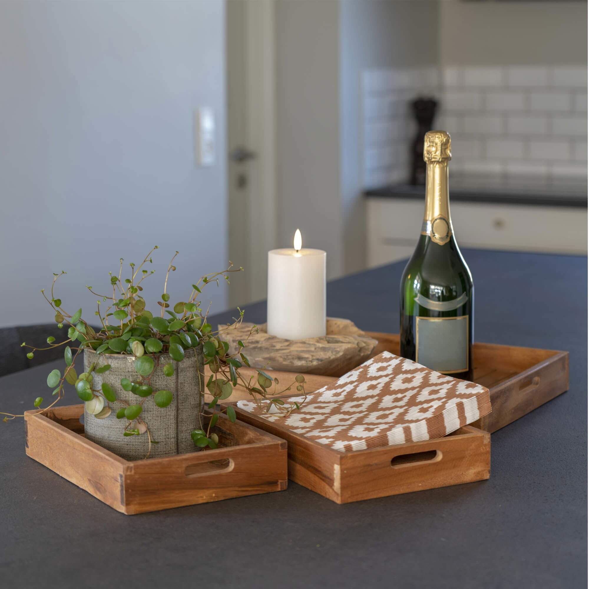 - Smukt træmønster: Bakkerne har en smuk træmønster, der tilføjer karakter og elegance til ethvert rum.