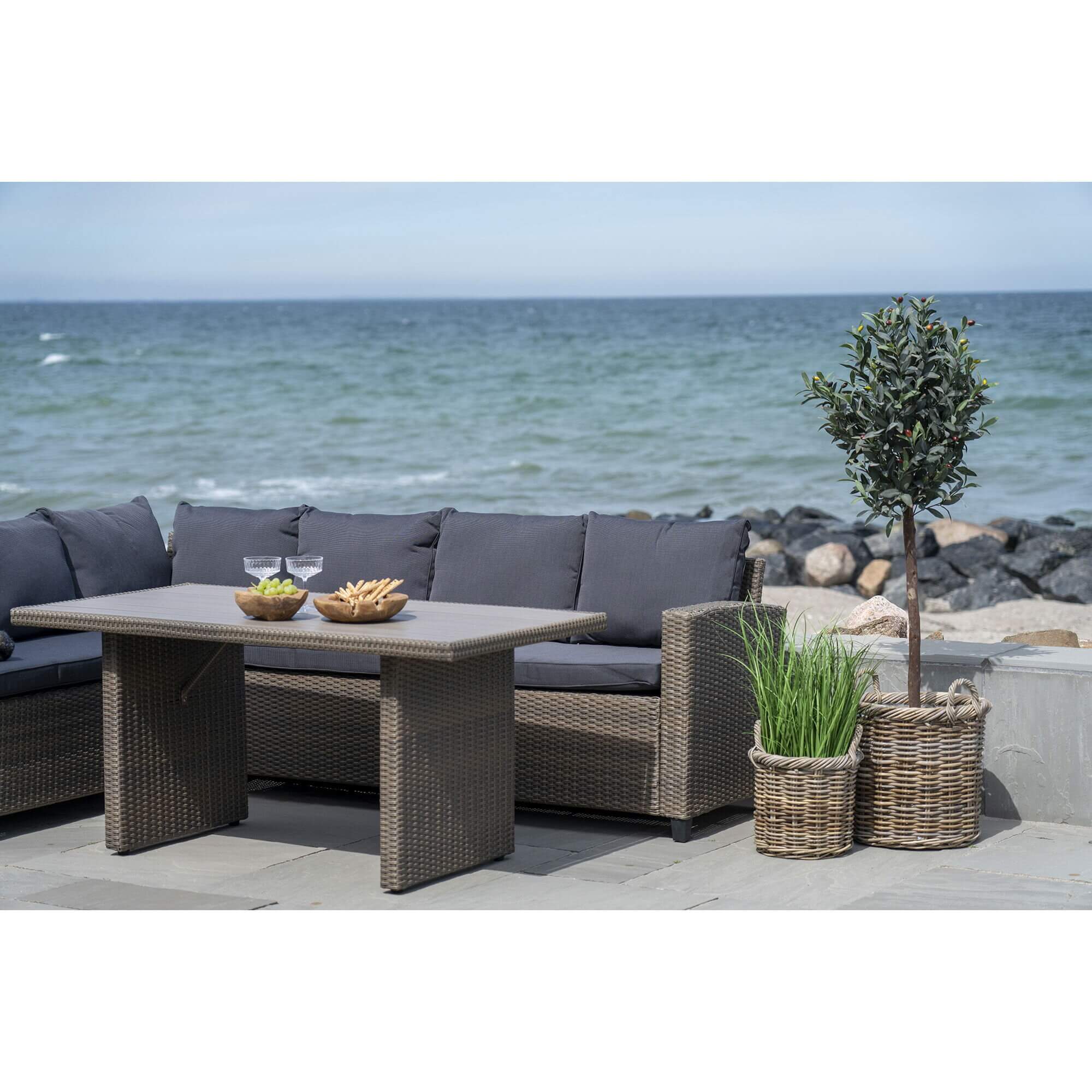 - Kubu rattanmateriale: Disse kurve er lavet af kubu rattan, hvilket giver dem en unik og naturlig tekstur. Materialet er også kendt for sin holdbarhed og modstandsdygtighed over for slid og riv.