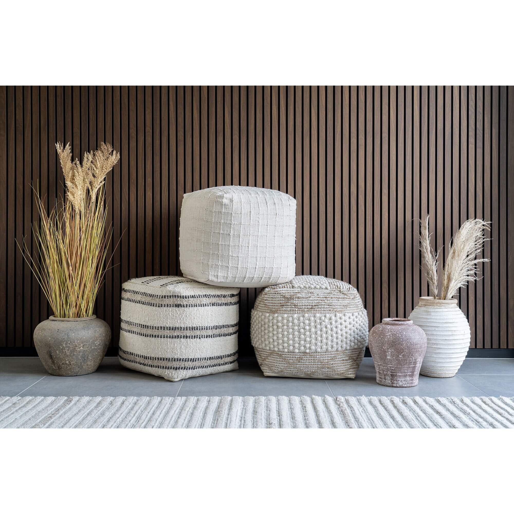 Guna Puf - Puf, håndvævet, råhvid, 40x40 cm-Stof, Skum
