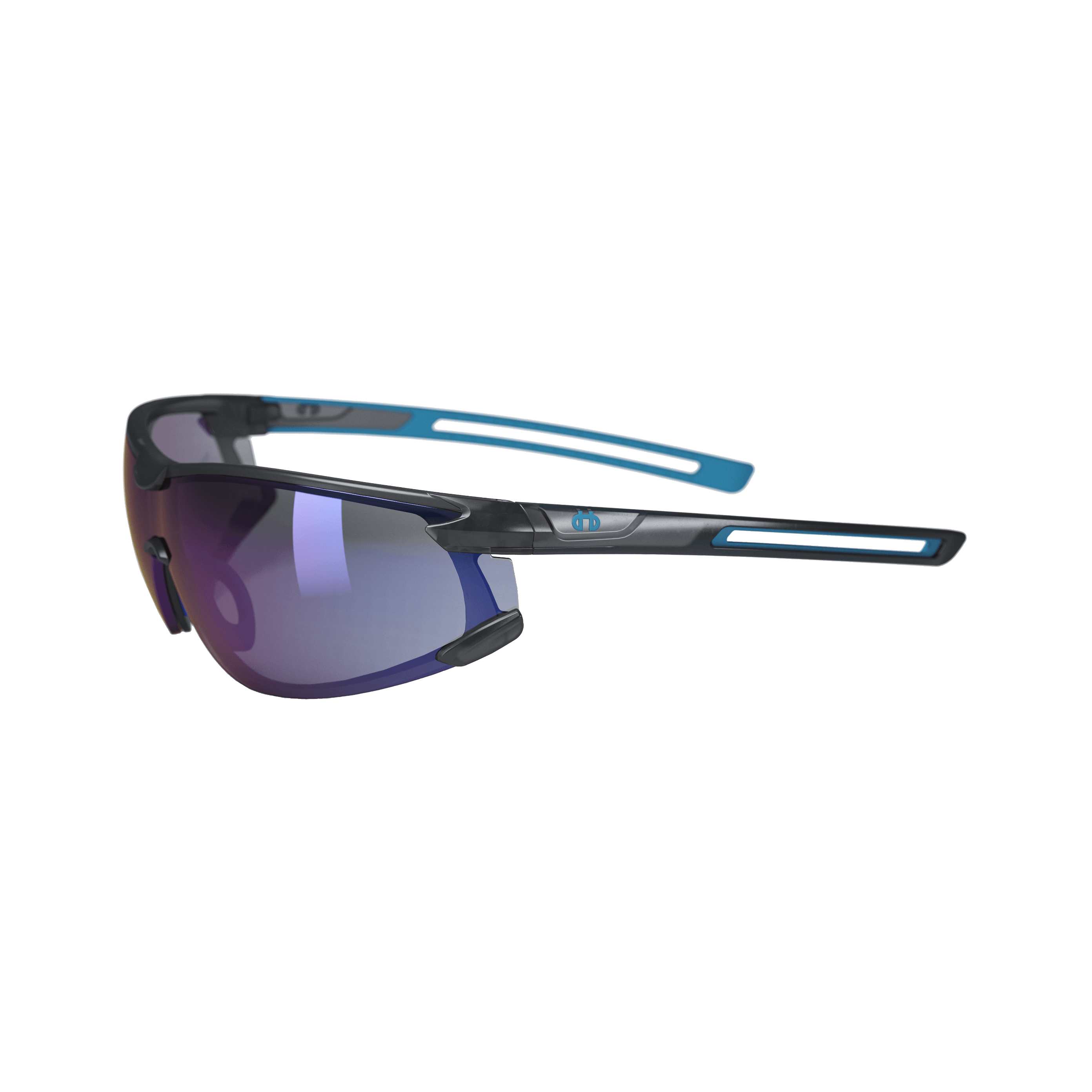 - Blåt spejlglas Det blå spejlbelagte glas beskytter mod UVA-UVB-lys (99,99 %) og afleder sollys, reducerer blænding og forbedrer kontrasten mere end et standardtonet glas. Til brug i solrige udendørsmiljøer.