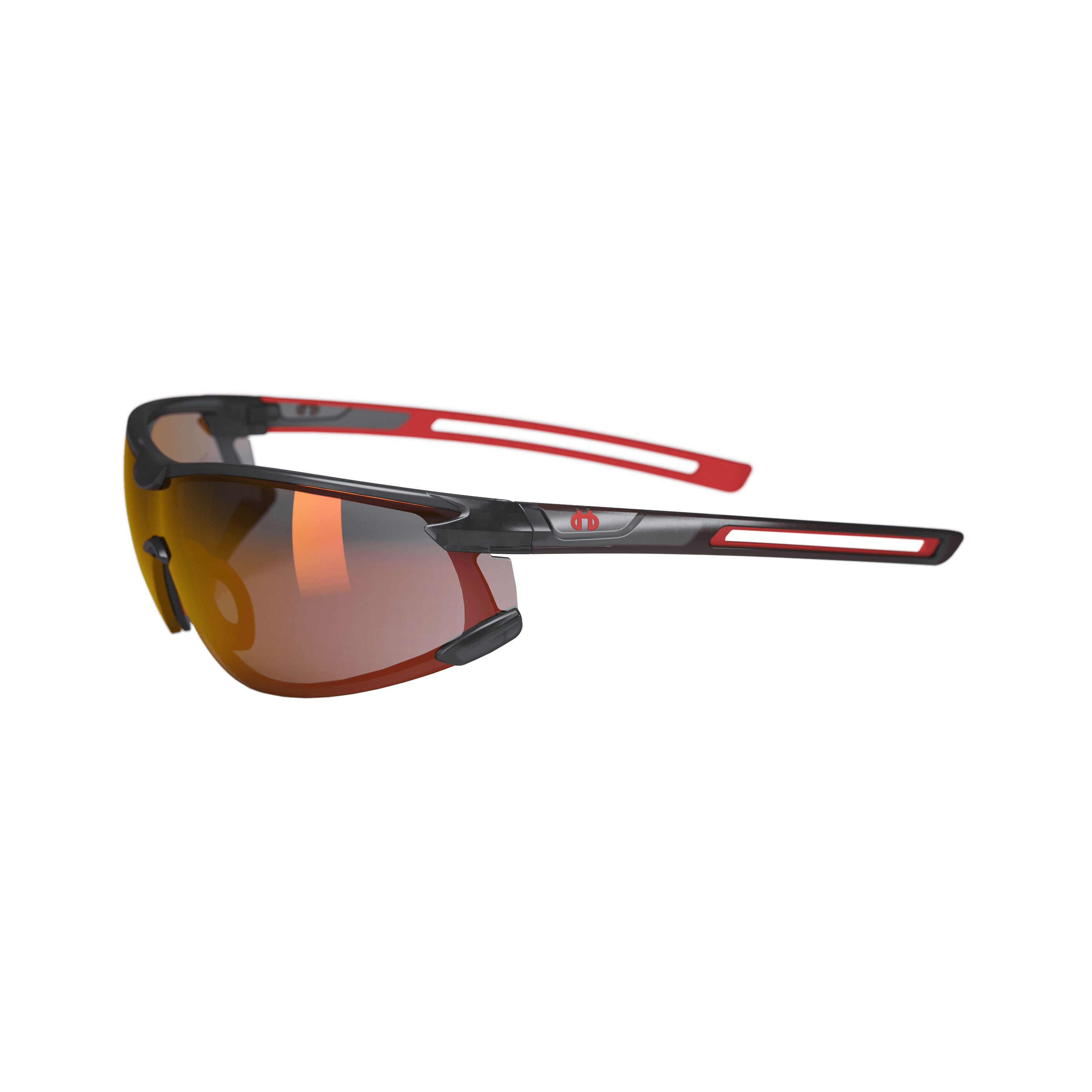 - Rødt spejlglas Det røde spejlbelagte glas beskytter mod UVA-UVB-lys (99,99 %) og afleder sollys, reducerer blænding og forbedrer kontrasten mere end et standardtonet glas. Til brug i solrige udendørsmiljøer