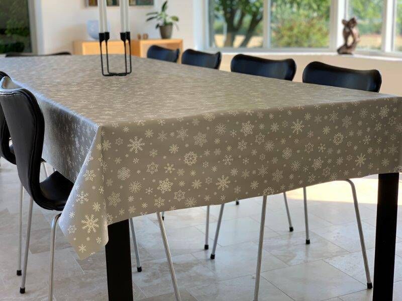 Denne julevoksdug er ideel til brug i dit hjem, men den kan også bruges til festlige arrangementer eller som en gave til en elsket. Det grå snefnugsmønster passer smukt ind i enhver indretning og tilføjer en julet touch til ethvert rum.