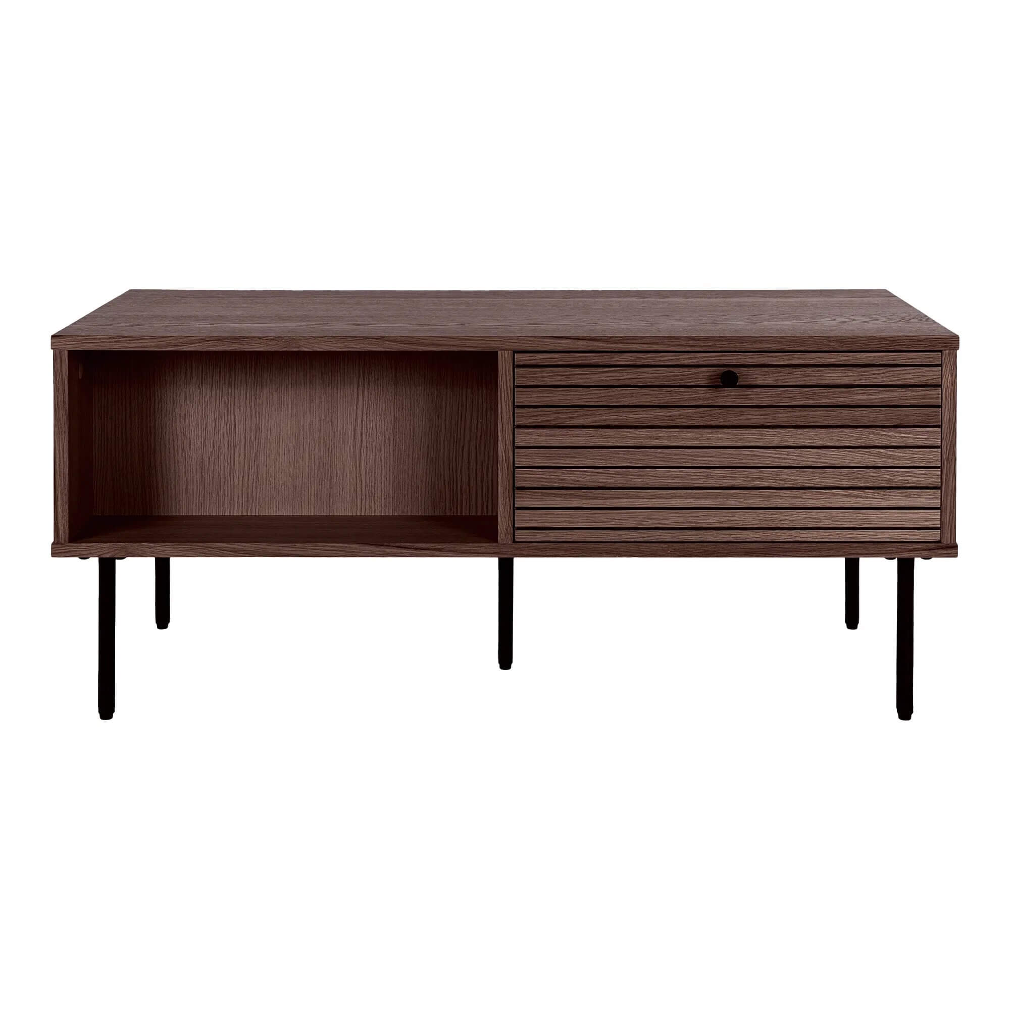 Kyoto Sofabord - Sofabord, 2 skuffer, egefiner, smoked, sorte metalben 50x100x45 cm-Egefiner, MDF, Stål