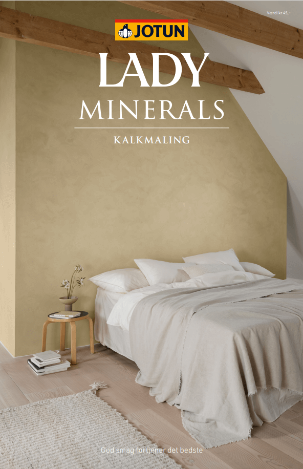 LADY Minerals Kalkmaling og LADY Minerals Revive giver smukke, kalkmatte, vægge med et levende, autentisk udtryk – uanset om dine vægge er glatte eller har en ujævn overflade med fx glasvæv. Med LADY Minerals kan du sætte dit eget præg på væggene og få en personlig finish, som afspejler din stil.
