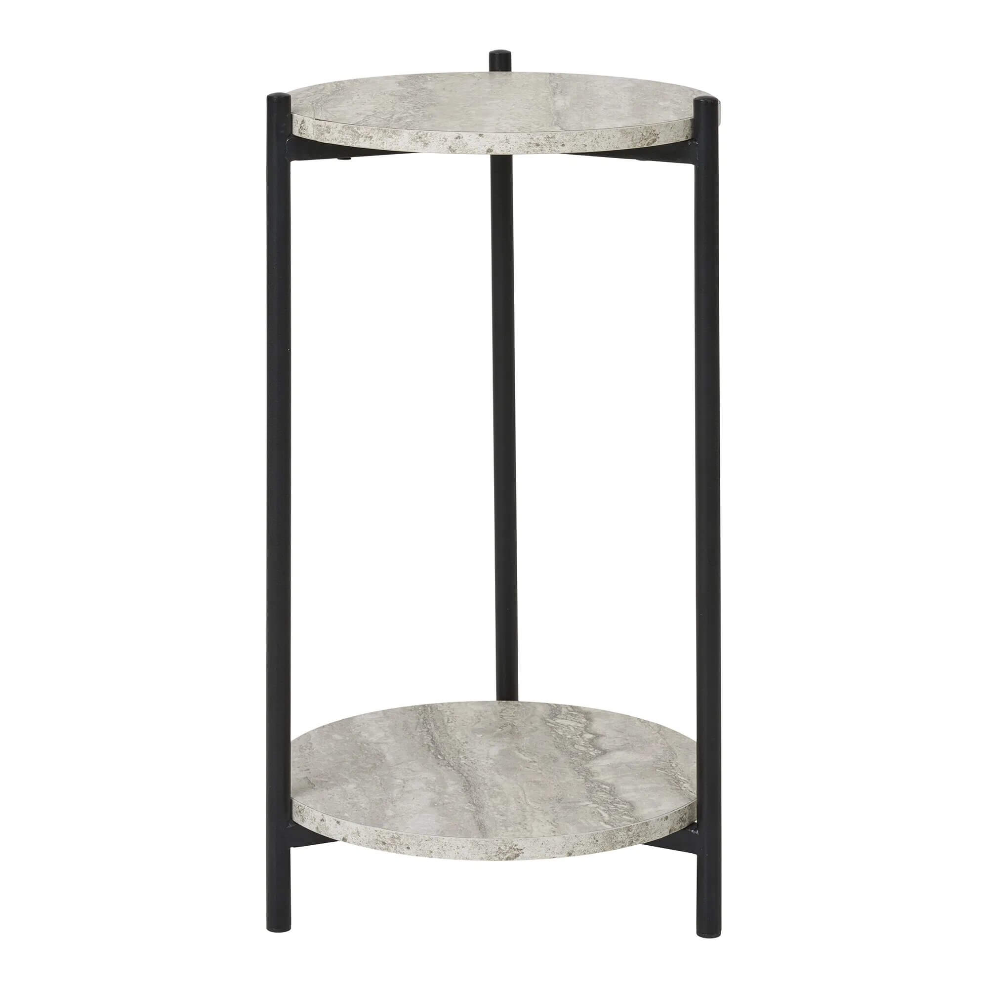 Leuven Sidebord - Sidebord, travertin look, sorte ben ø27x46 cm-Stål, MDF