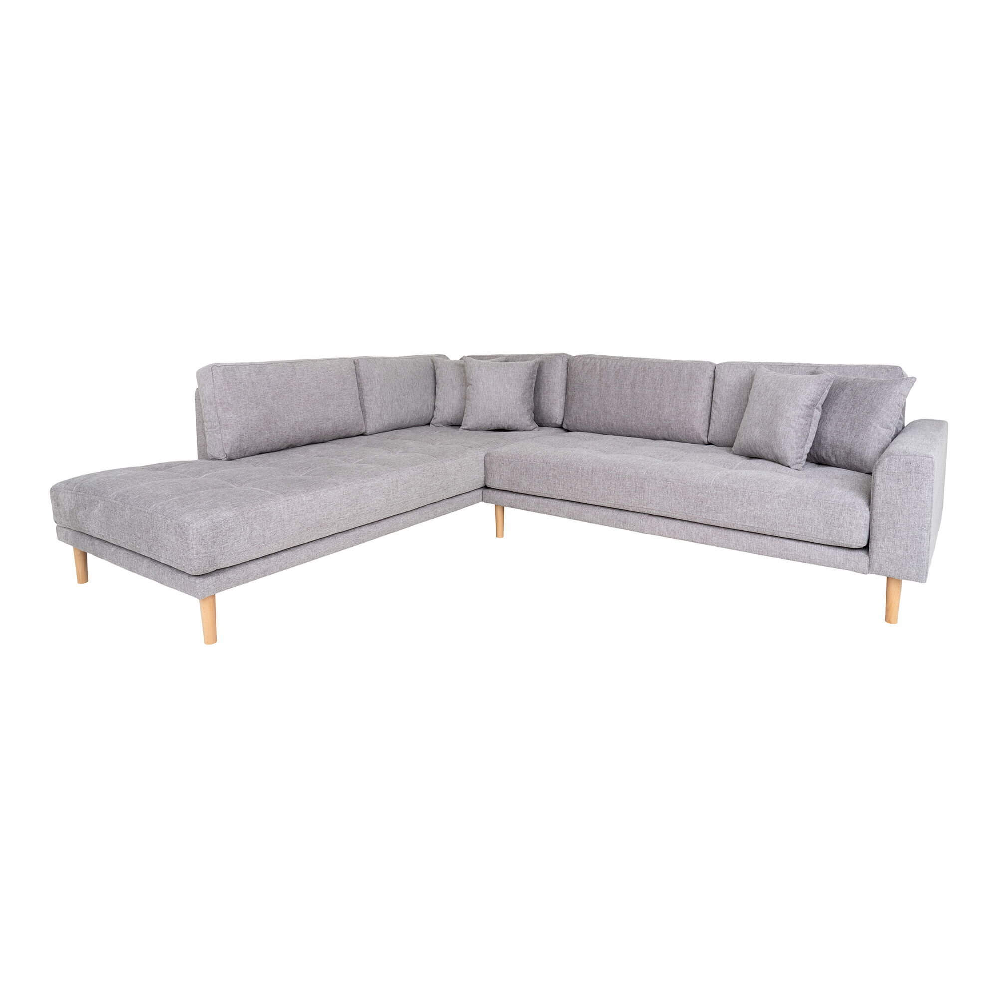 Lido Hjørnesofa Åben Ende - Hjørnesofa Åben Ende,venstrevendt i lysegrå med fire puder og natur træben, HN1040