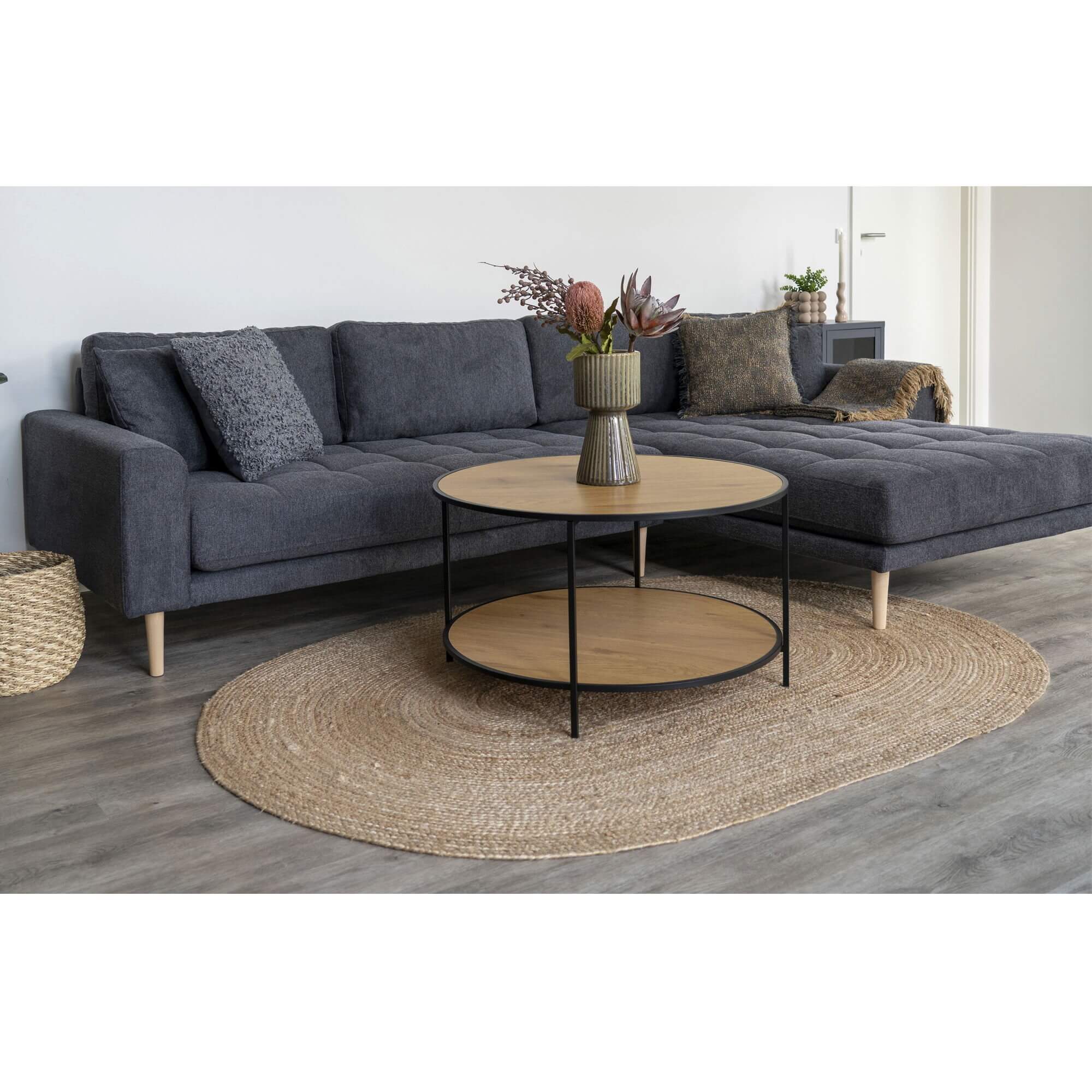 Lido Lounge Sofa - Lounge Sofa, højrevendt i mørkeblå med fire puder og natur træben, HN1035