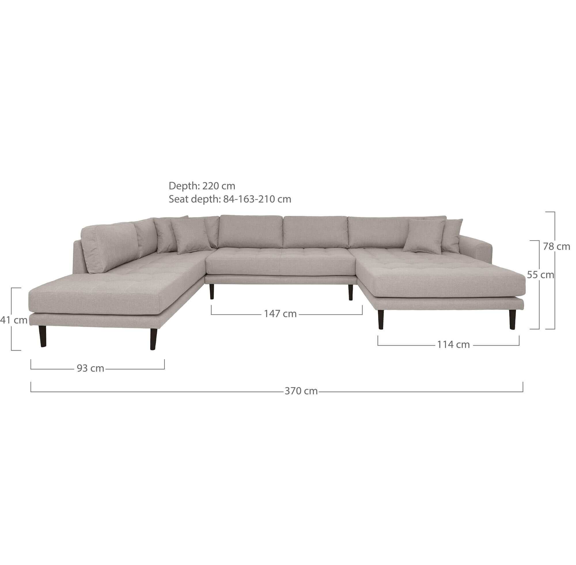 - Sorte træben: Denne U-sofa har smukke sorte træben, der tilføjer en moderne og stilfuld detalje til designet.