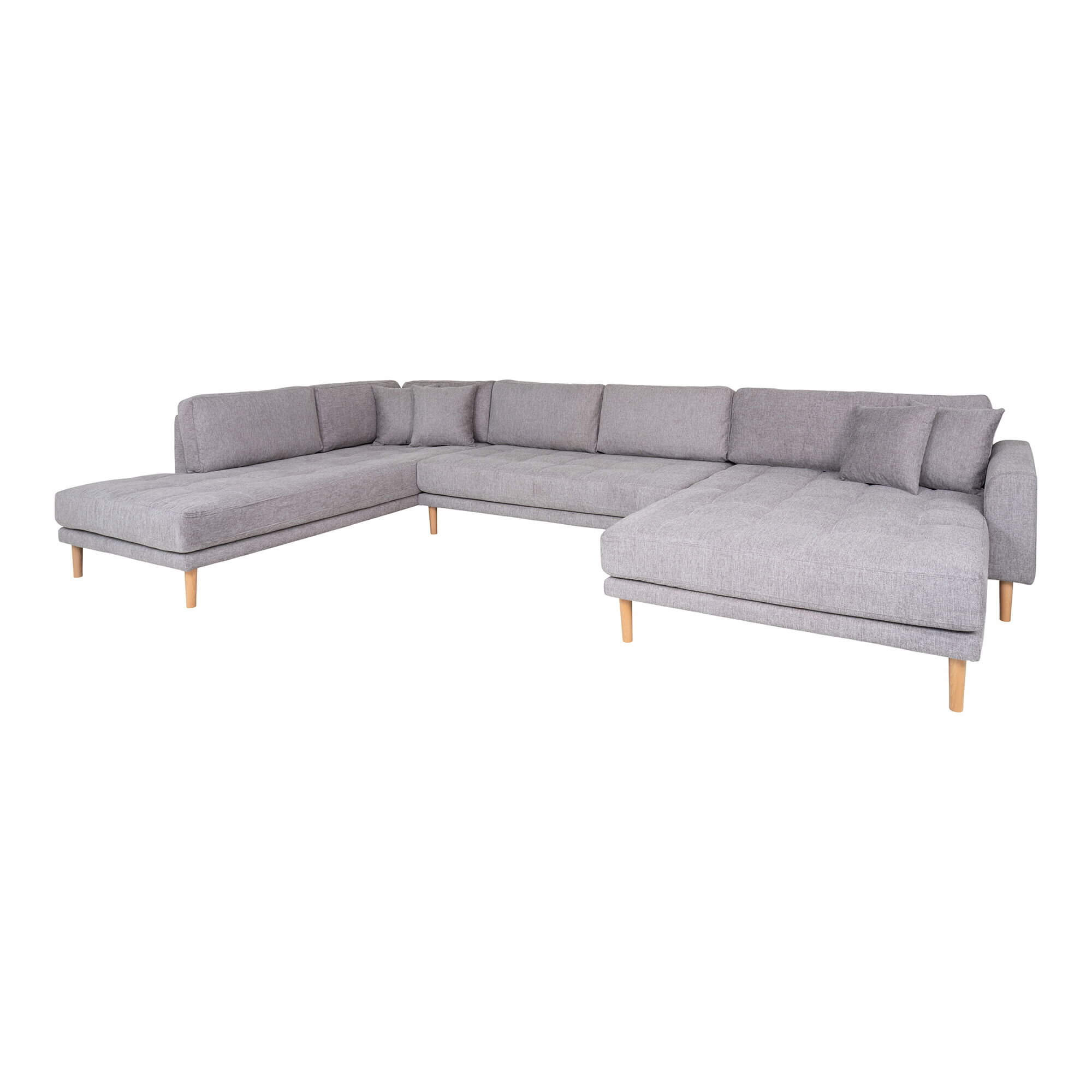 Lido U-Sofa Åben Ende - U-Sofa Åben Ende, højrevendt i lysegrå med fire puder og natur træben, HN1040