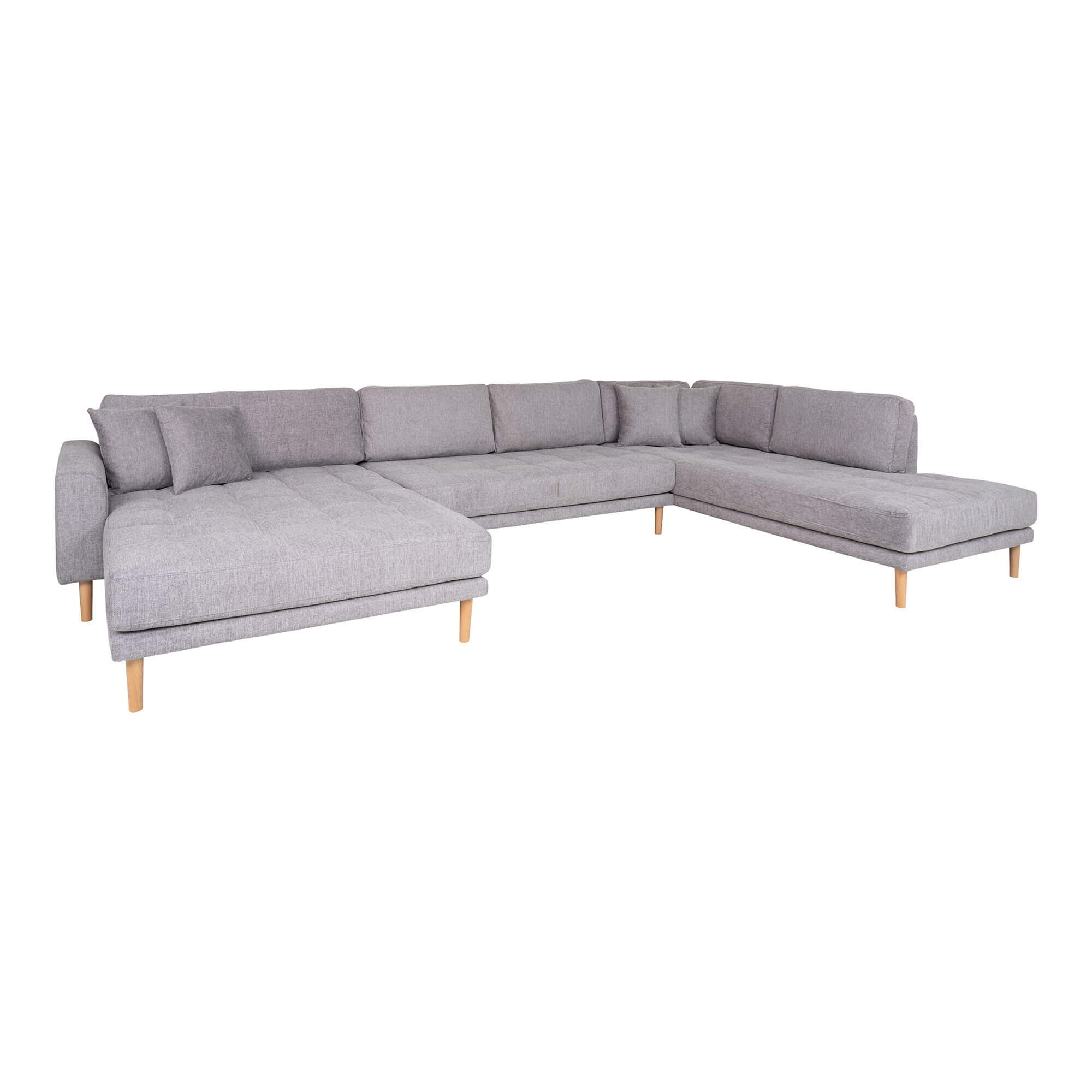 Lido U-Sofa Åben Ende - U-Sofa Åben Ende, venstrevendt i lysegrå med fire puder og natur træben, HN1040