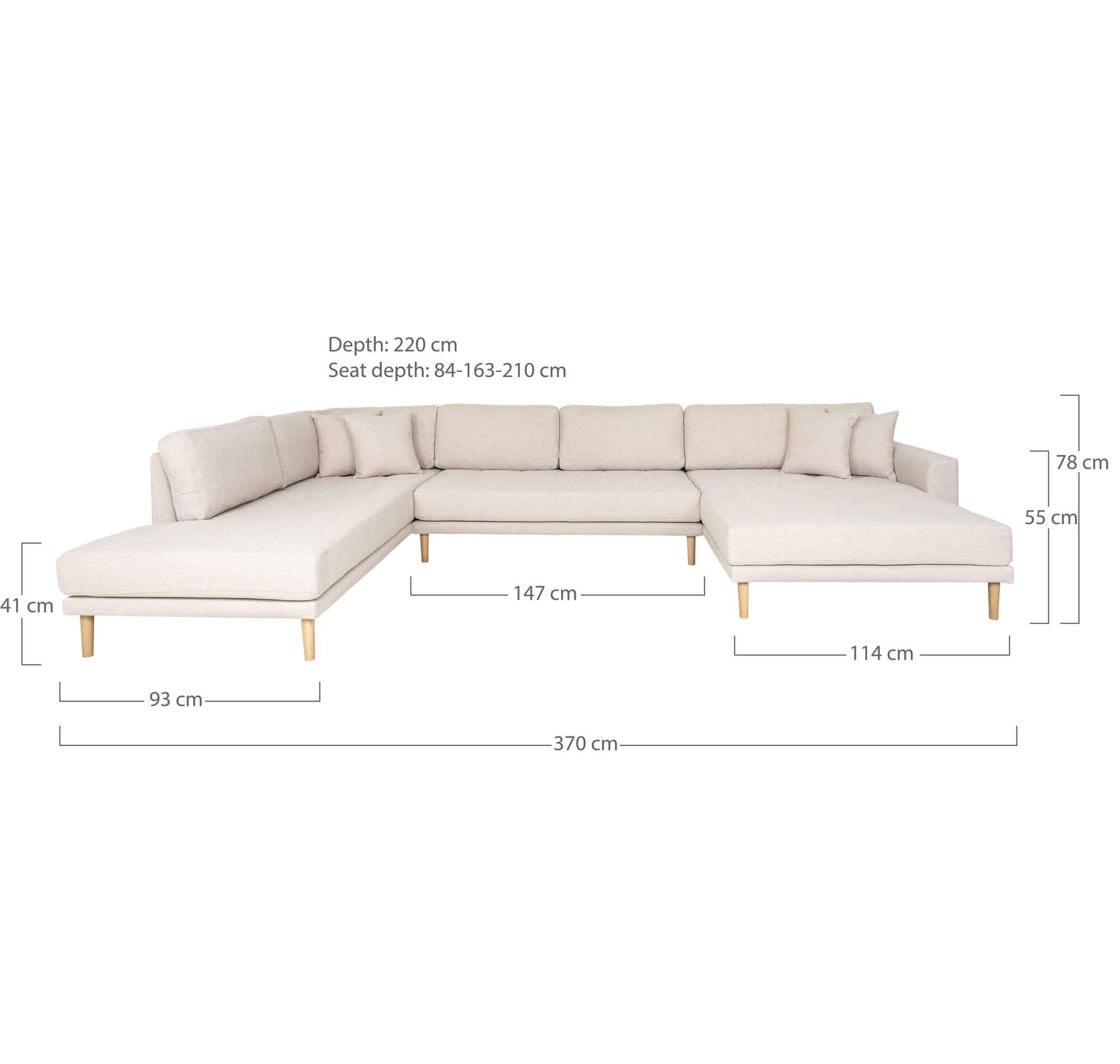 Lido U-Sofa Åben Ende - U-Sofa Åben Ende, højrevendt i sand med fire puder og natur træben, HN1050