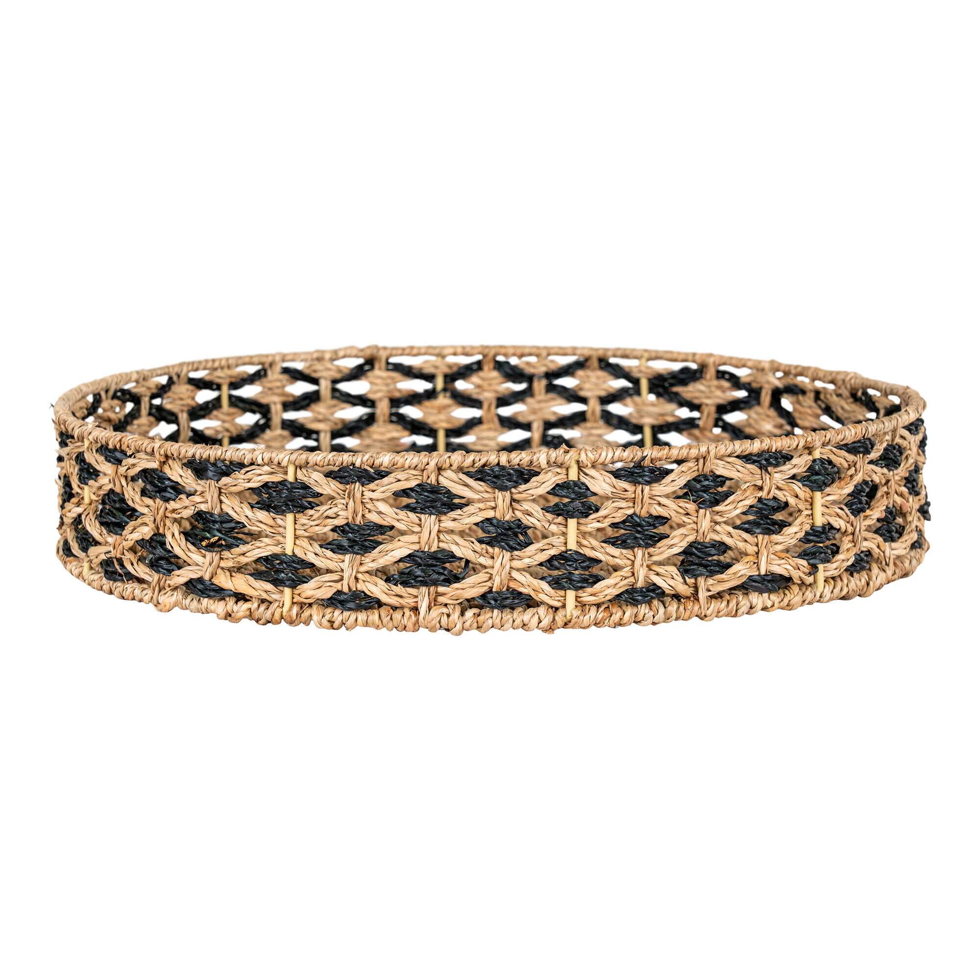 Introducing the Nerja Bakke - Bakke i søgræs, a stunning round tray made from seagrass in a beautiful black/natural color combination. This elegant tray, with a diameter of 38 cm, is the perfect addition to any home decor. Whether you use it to serve drinks and snacks to your guests or as a decorative piece on your coffee table, this tray will surely enhance the aesthetics of your space.