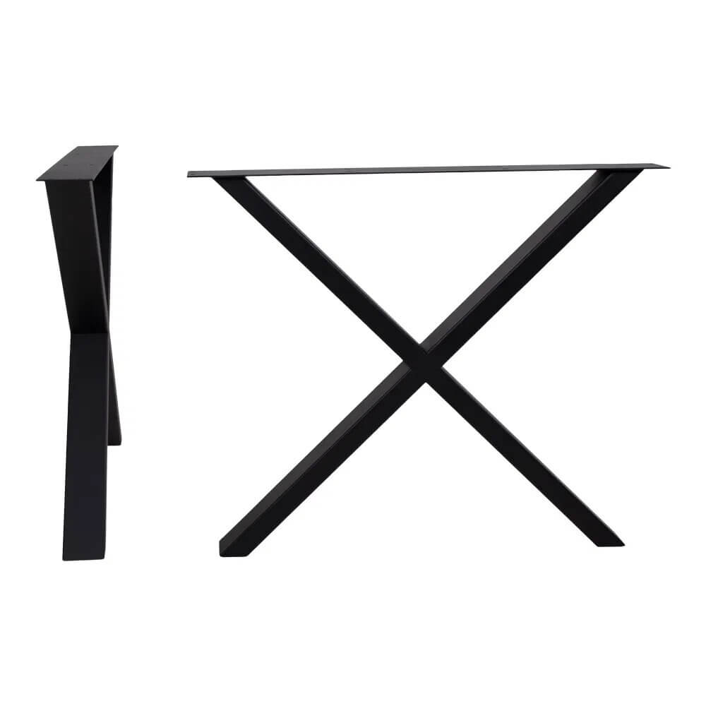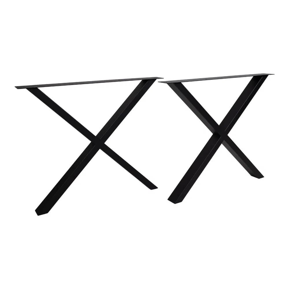 Nimes Bordben - Ben til spisebord, pulverlakeret sort, design X, 8x86x72 cm