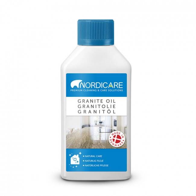 Nordicare granitolie er en klar olie til behandling og vedligeholdelse af granit og andre porøse stenarter, deriblandt uglaseret klinker. Olien trænger dybt ned i stenen og beskytter overfladen imod udtørring og tilsmudsning. Desuden fremhæves overfladens naturlige struktur og glans.