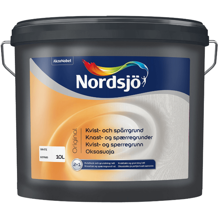Nordsjö Original Knast- og spærregrunder er en vandig spærrende maling til træ. Anvendes indendørs på ubehandlet eller tidligere behandlet træ, for at mindske risikoen for misfarvning og gennemslag fra harpiks/knaster, gulnet træ m.m. Nordsjö Original Knast- og spærregrunder kan også anvendes til færdigmaling af f.eks.væg- og loftpaneler.