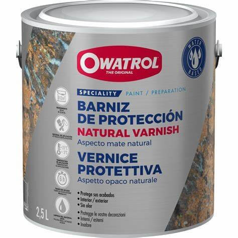 NATURAL VARNISH er en beskyttende lak med mat finish som bruges på dekorative effekter lavet med OWATROL SPIRIT-serien.