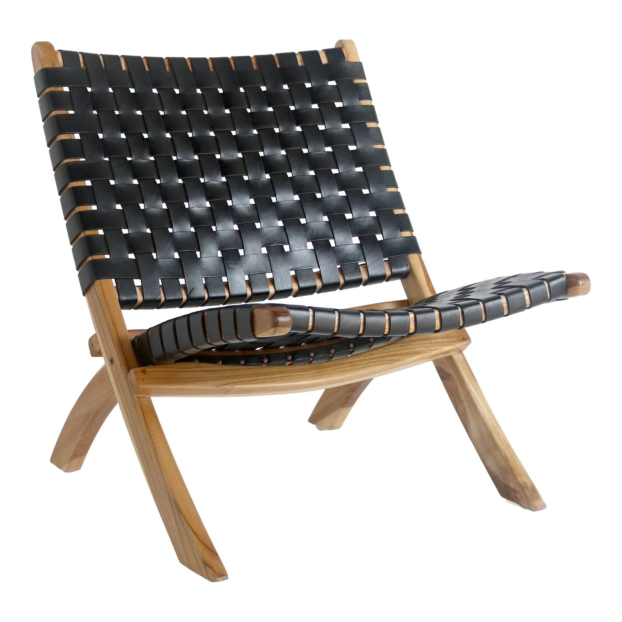 Perugia Foldestol - Foldestol i læder, sort med teaktræ ben