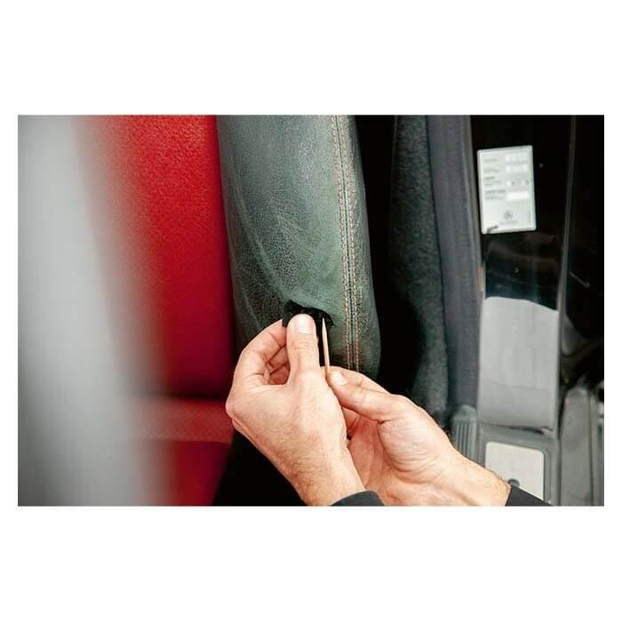 Reparation af hul i dit lædersæde eller rat kan blive rigtig dyrt hos et professionelt firma. Men med Quixx læder & vinyl reparationssæt kan du selv udbedre skaderne og få bilen til at se pæn ud igen.