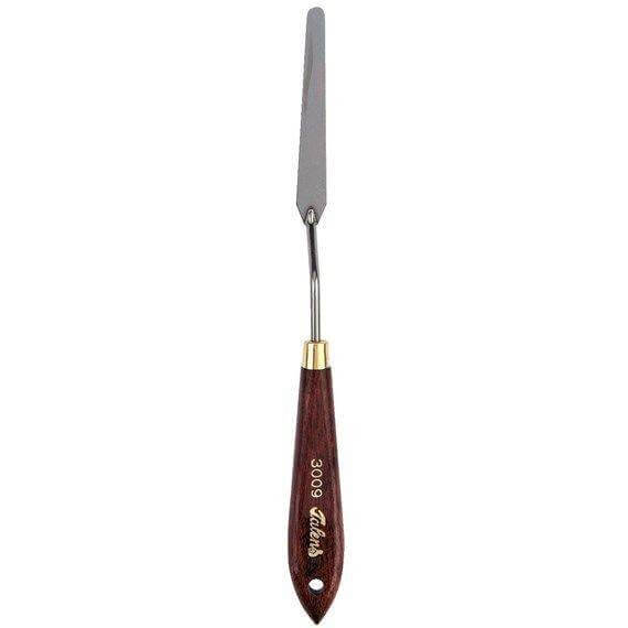 Paletkniv til klargøring og blanding af maling. Perfekt til udtryksfuldt, velstruktureret arbejde med olie- og akrylfarver. Med fleksible og elastiske stålblade, med håndtag lavet af poleret massivt træ.