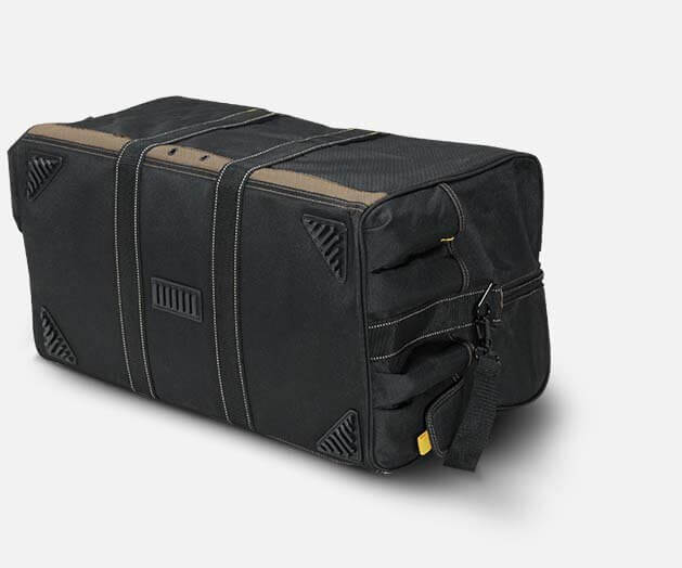 - En slidstærk universaltaske til grej designet til at håndtere omfangsrigt værktøj og tilbehør. Den har 7 udvendige lommer, slidstærke gummifødder, polstrede håndtag og en polstret skulderrem for nem transport. 55 liter.