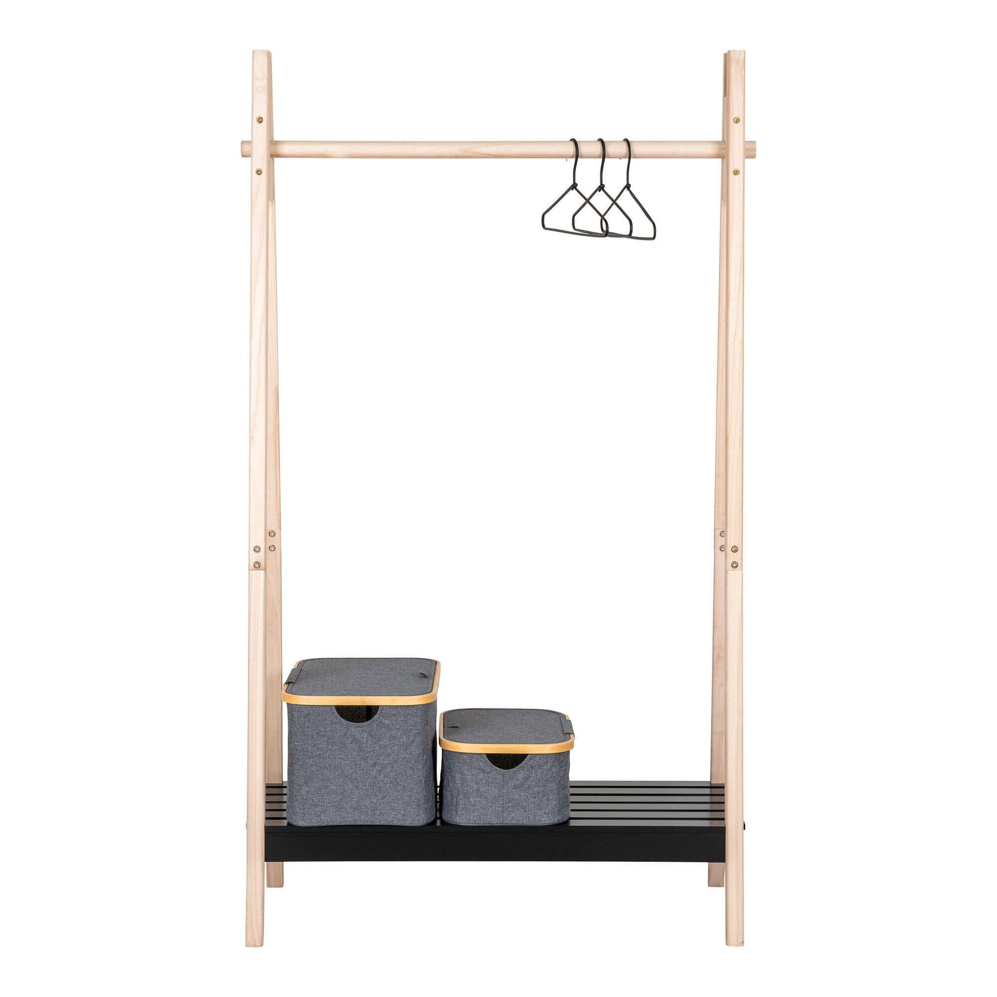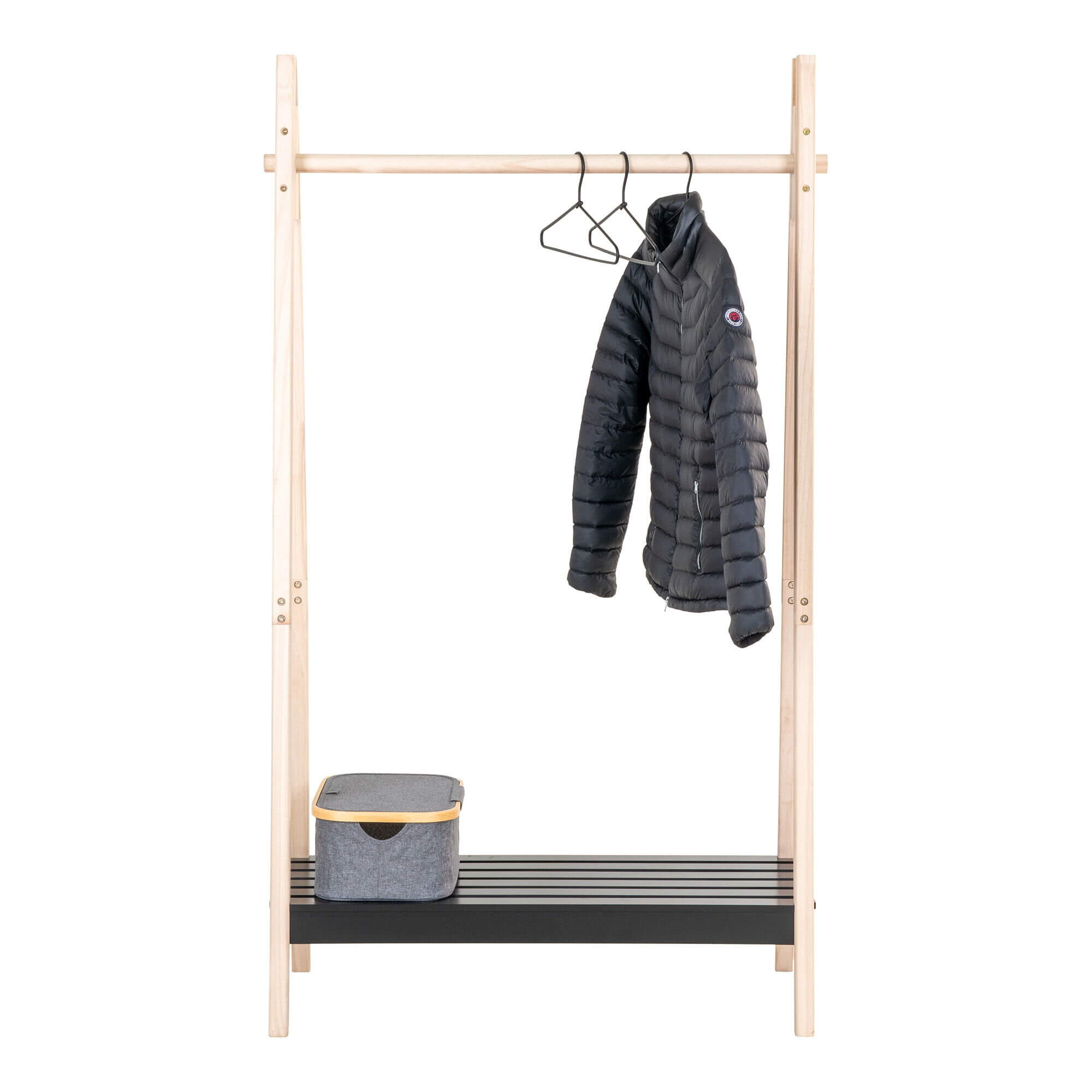 - Holdbar konstruktion: Tøjstativet er lavet af naturtræ og sort-MDF, hvilket sikrer, at det er holdbart og solidt.