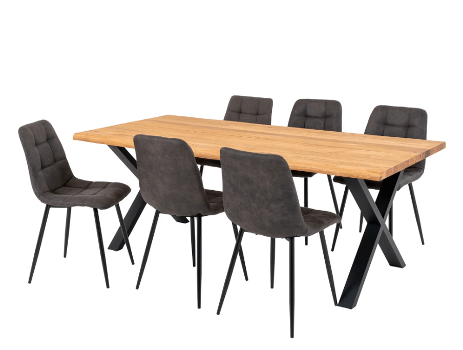 Toulon og Middelfart Spisebordssæt - Spisebord og 6 Spisebordsstole-Microfiber, Stål, Eg, Metal
