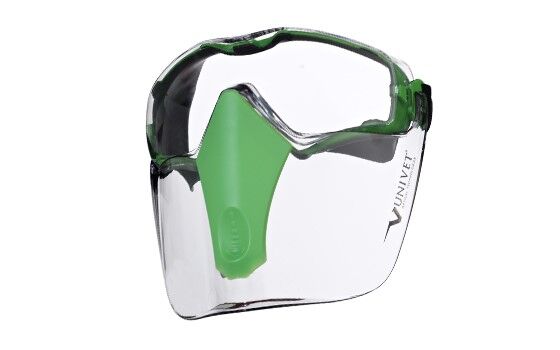 Denne innovative goggle med visir fra Univet er designet til perfekt brug sammen med halvmasker som f.eks. CleanSpace-masker. Denne goggle med visir giver dig en forøget sikkerhed takket været en perfekt pasform, bredspektret beskyttelse og utrolig god mekanisk styrke. Med dens mange funktioner og høj kvalitet er denne goggle med visir et uundværligt værktøj til arbejdsmiljøer, der kræver beskyttelse mod væsker, støvpartikler og meget varme emner.