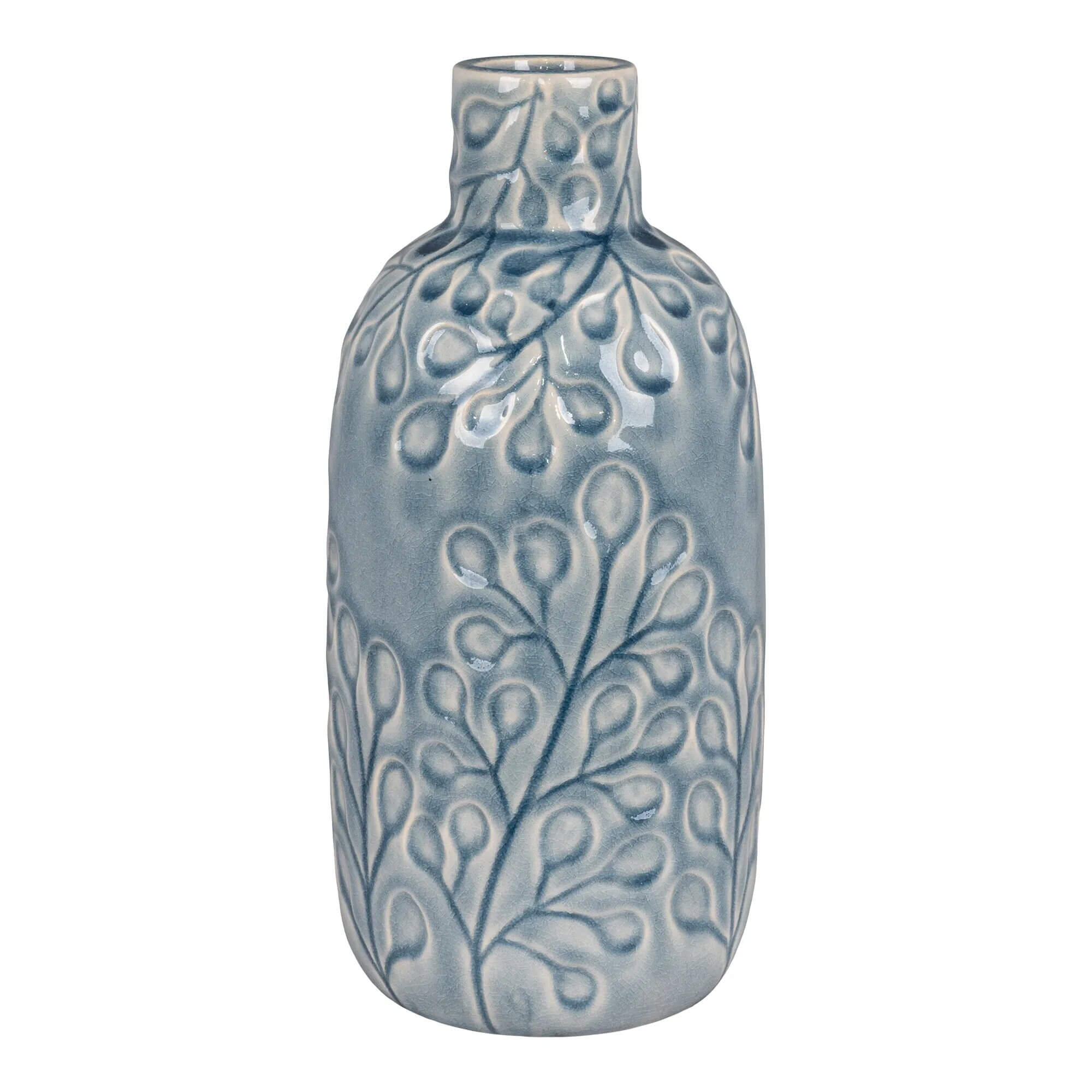 Vase - Vase i keramik, blå med mønster, rund, Ø12x26 cm