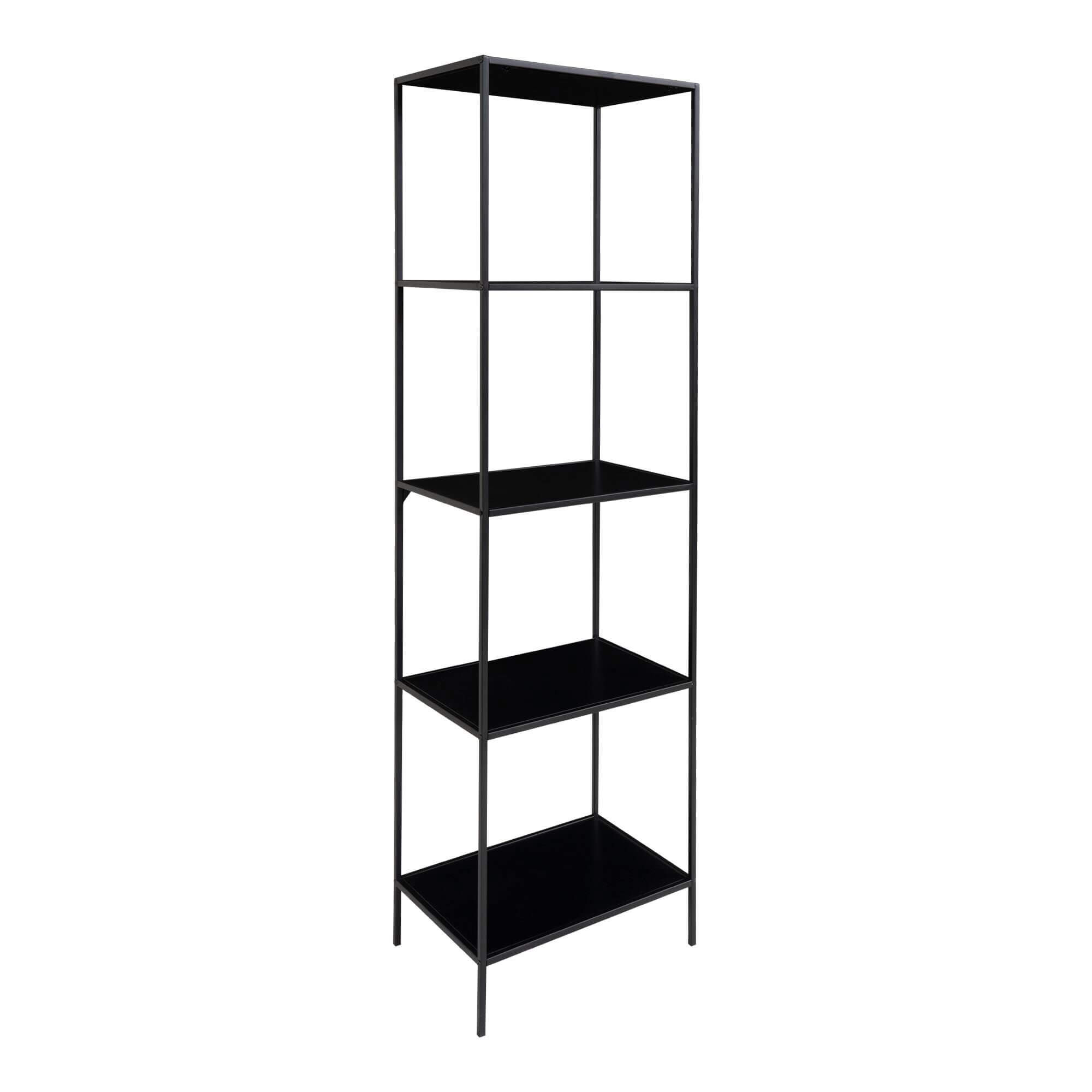 Denne reol tilbyder en lang række fordele, der gør den til det perfekte valg for dig. Med dens slanke og minimalistiske design bringer den et elegant touch til enhver indretning. Den sorte farve og de sorte ben skaber en sofistikeret og moderne look, der passer til enhver stil. Den har også fem hylder, der giver dig masser af plads til at opbevare og udstille dine ejendele.