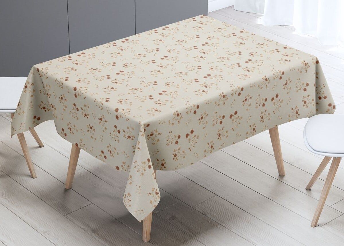 Voksdug med brune blomsterranker. Dugen er 140 cm. bred