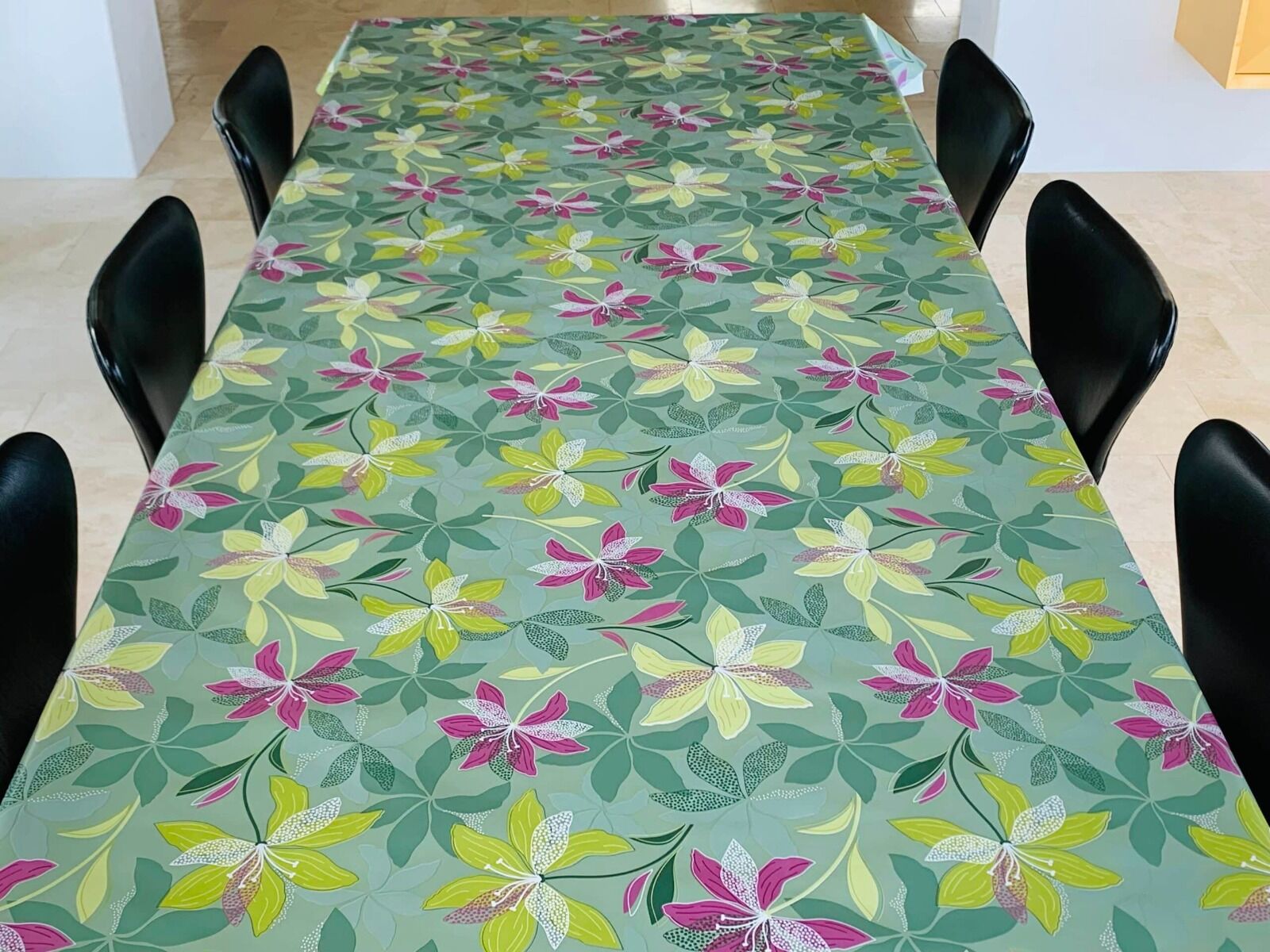Voksdug - grøn med lilla, hvide og grønne blomster