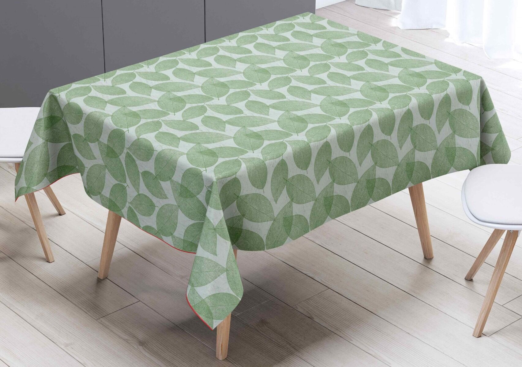 Voksdug med grønne blade. Dugen er 140 cm. bred