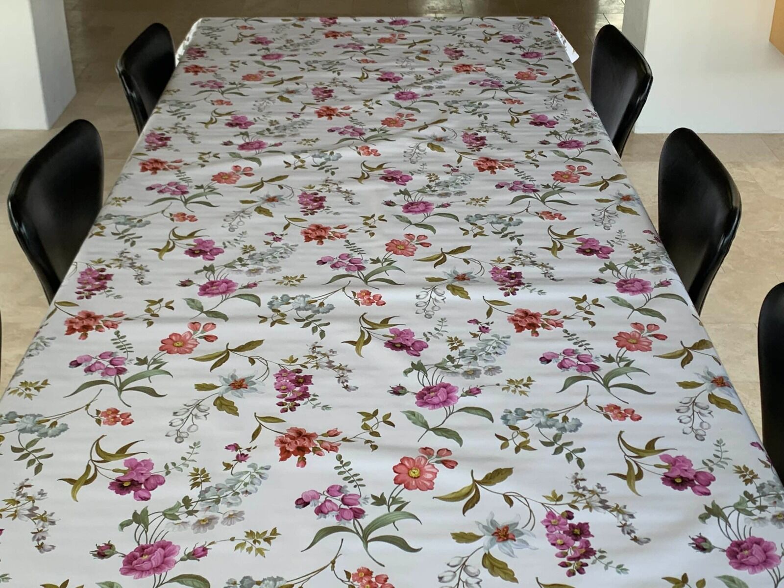 Voksdug - Lilla og hvide blomster