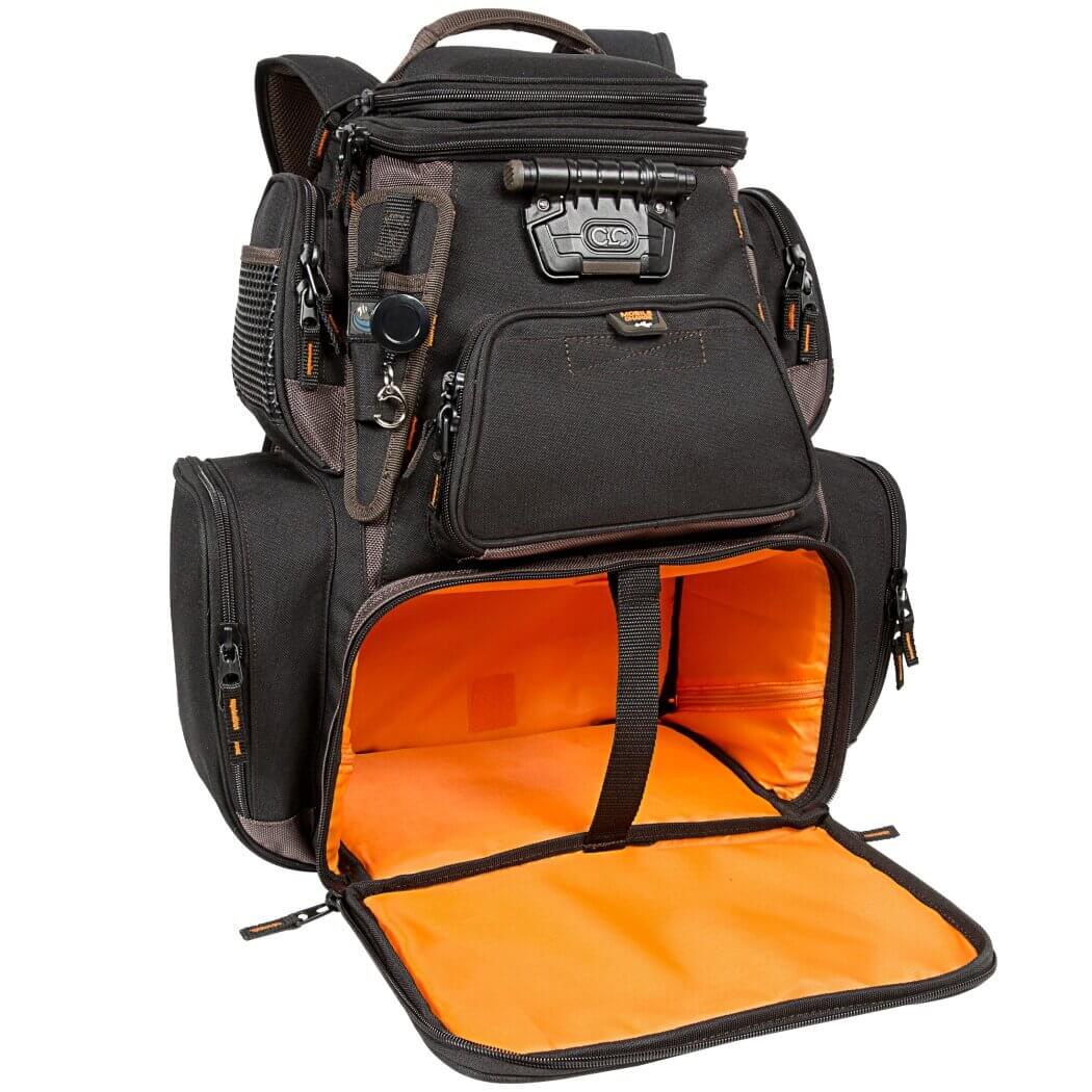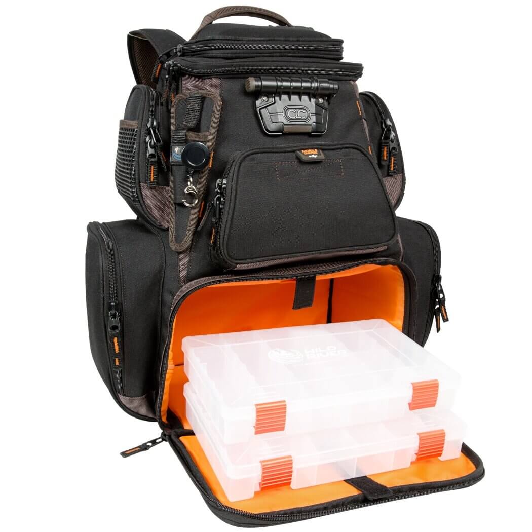 Wild River Nomad® XP rygsækken med lys har en integreret genopladelig USB-strømforsyning på 5.000 mAh, som er designet til at oplade små bærbare elektroniske enheder. Den har også et integreret LED-lyssystem med 3 niveauer, som kan drejes og dermed oplyse såvel rygsækkens inderside og det udvendige arbejdsområde. Derudover kan den rumme op til seks kasser i 3600-serien og fire kasser i 3500-serien.