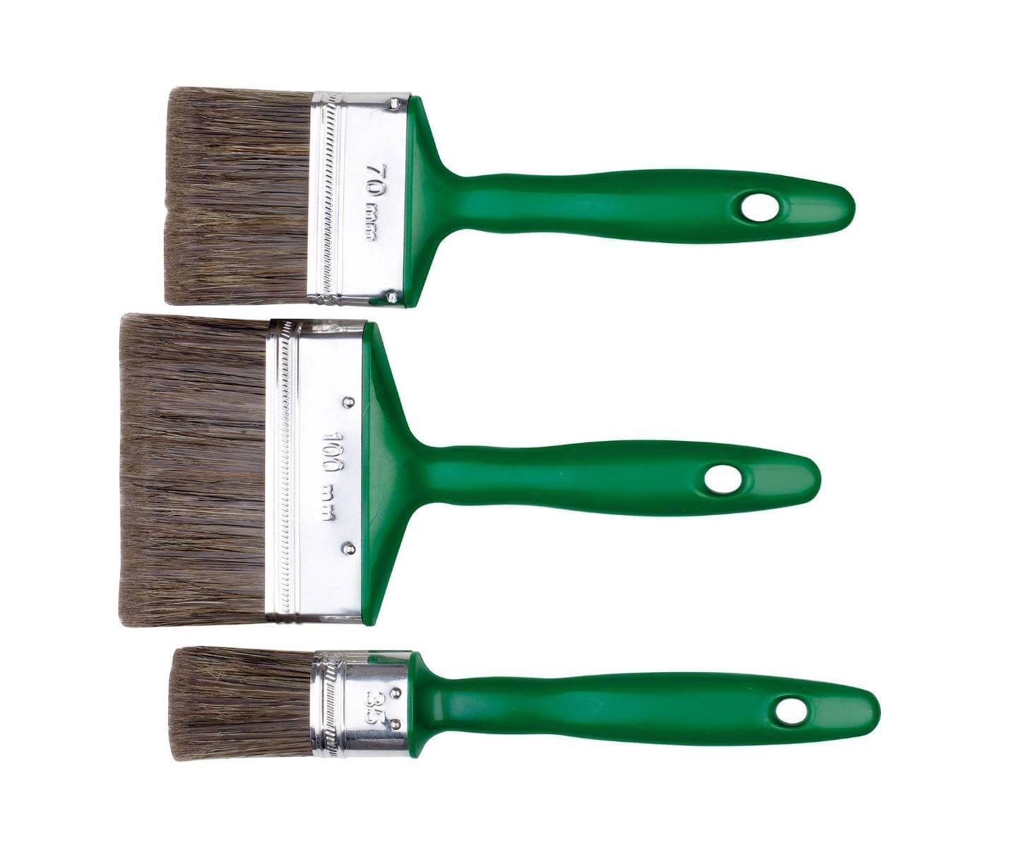 Sæt bestående af 1 ovalpensel 35mm, 1 fladpensel 70mm og 1 fladpensel 100mm. Penslerne fungerer både til vandbaserede og oliebaserede malingstype